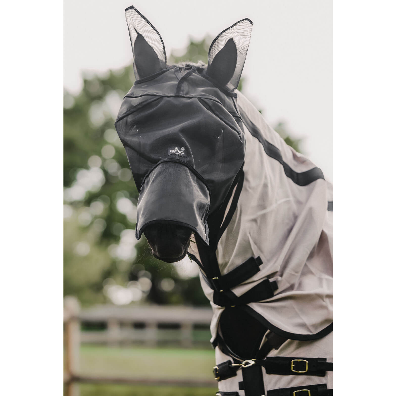 Ausgestattet mit einem hochwertigen Netzgewebe, bietet die Fliegenmaske Classic von Kentucky Horsewear einen zuverlässigen Schutz gegen Fliegen und andere Insekten. Zusätzlich gewährleistet das Material 100% UV-Schutz, was dein Pferd vor schädlichen Sonnenstrahlen bewahrt. Die Ohren sind mit einem speziellen gestrickten Anti-Fliegen-Gewebe versehen, das sowohl leicht als auch effektiv ist.