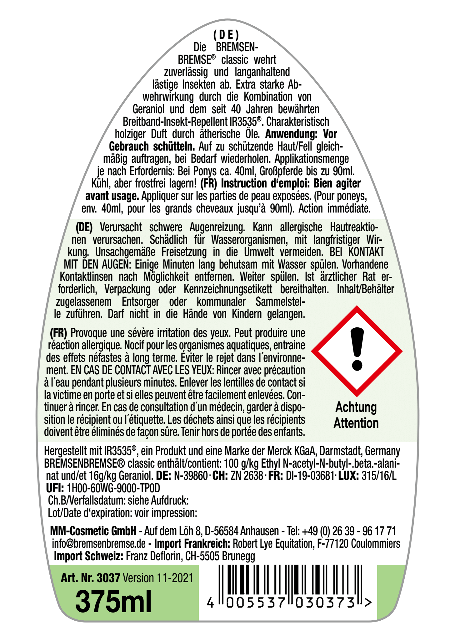 BREMSENBREMSE Insektenschutz Classic Insektenspray Fliegenspray bietet effektive Unterstützung bei der Abwehr von Insekten. Ideal für den Einsatz im Stall oder auf der Weide. Verfügbar in verschiedenen Größen für unterschiedliche Bedürfnisse.