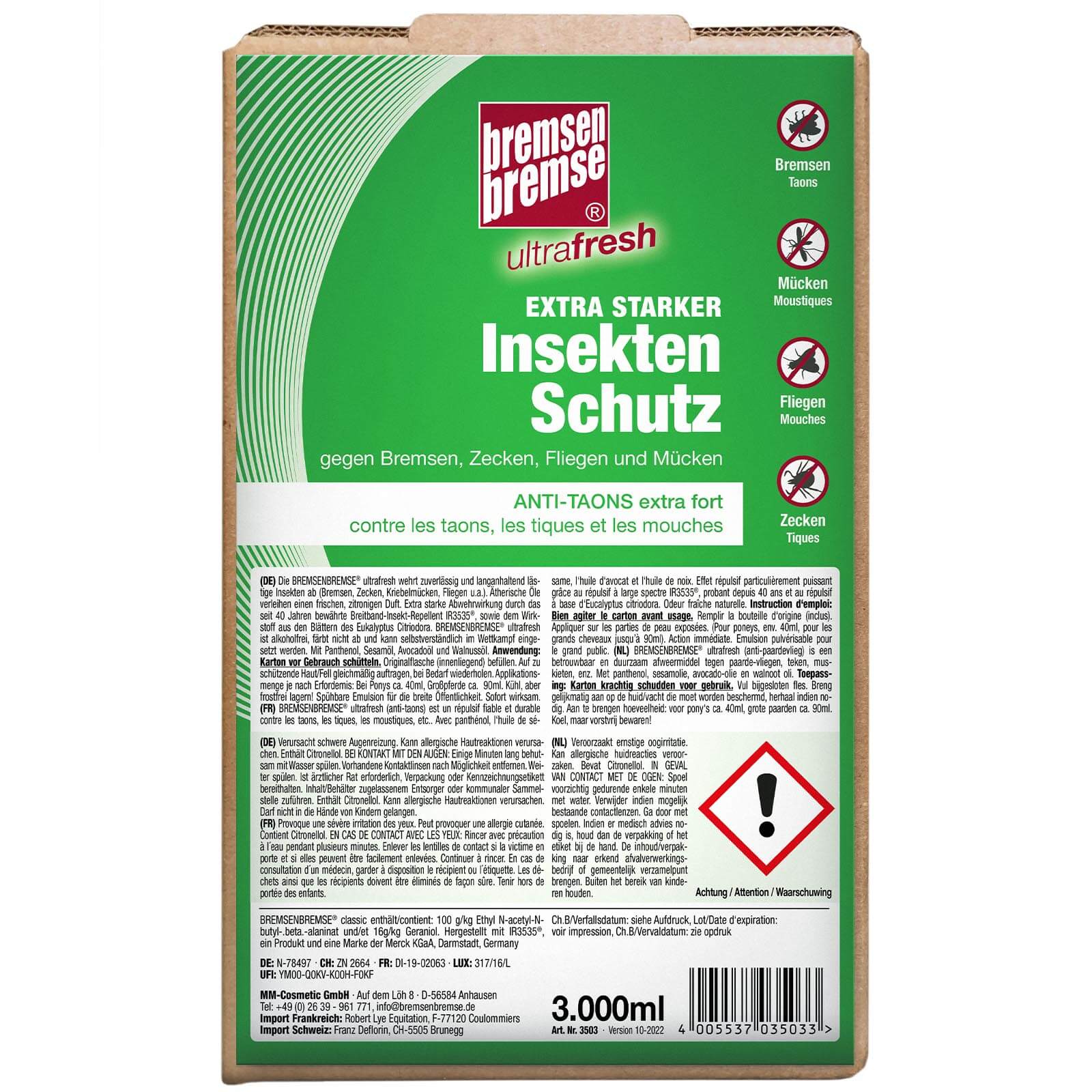 BREMSENBREMSE Insektenschutz - ultrafresh bietet vielseitigen Einsatz im Reitsport. Ideal für den Schutz von Pferden und Reitern. Erhältlich in verschiedenen Verpackungsgrößen, um individuellen Bedürfnissen gerecht zu werden.