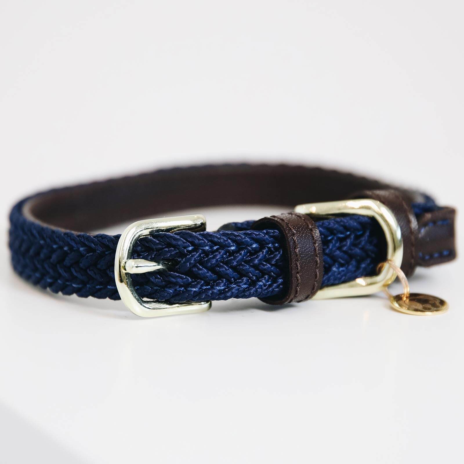 Das Hundehalsband besticht durch seine geflochtene Struktur aus hochwertigem Nylon, die nicht nur ästhetisch ansprechend ist, sondern auch für hohe Robustheit sorgt. Die edlen Farben wie Bordeaux, Navy und Grau passen perfekt zu jedem Felltyp und unterstreichen die Persönlichkeit deines Hundes. Dank des Lederimitats ist das Halsband zu 100% tierfreundlich und bietet einen luxuriösen Look.
