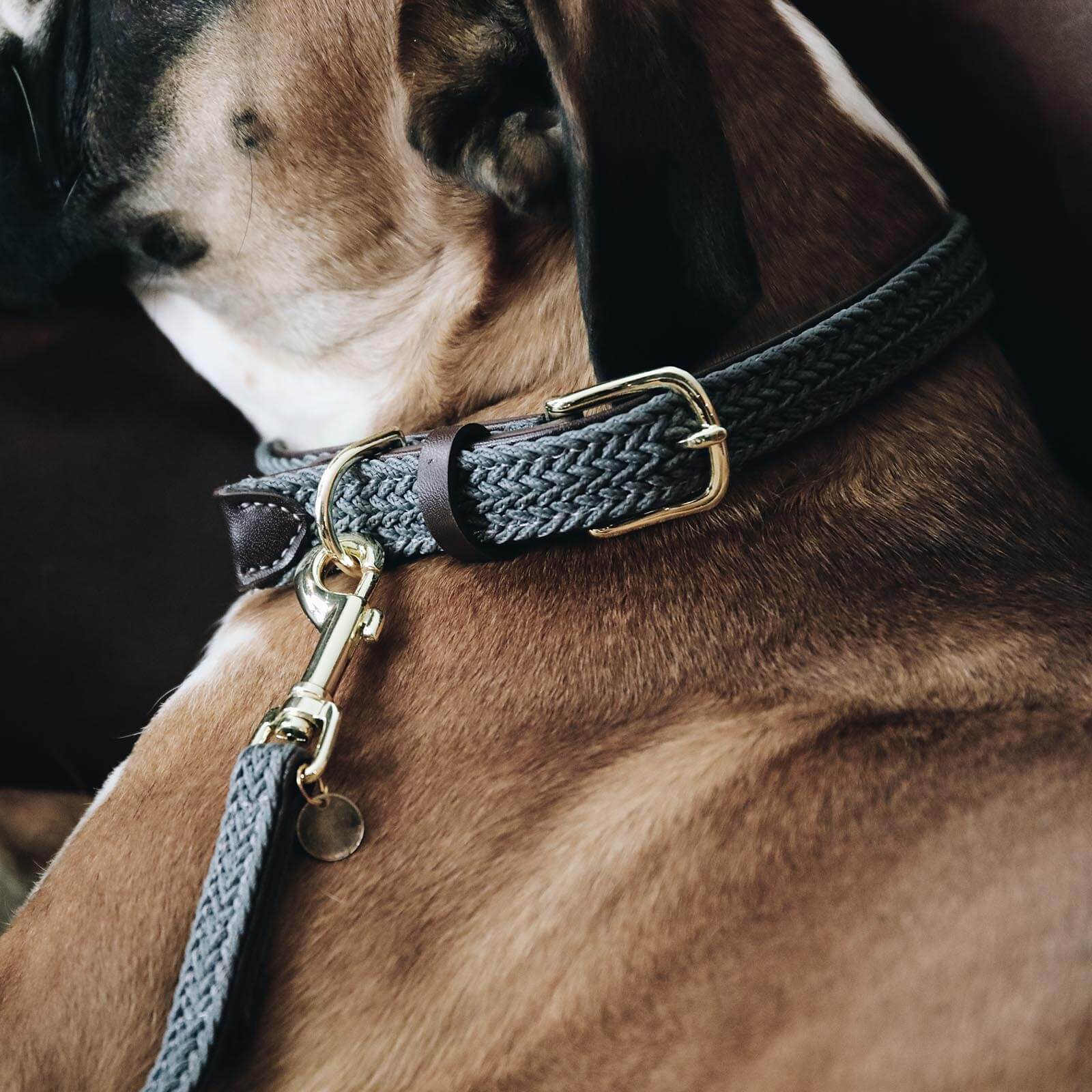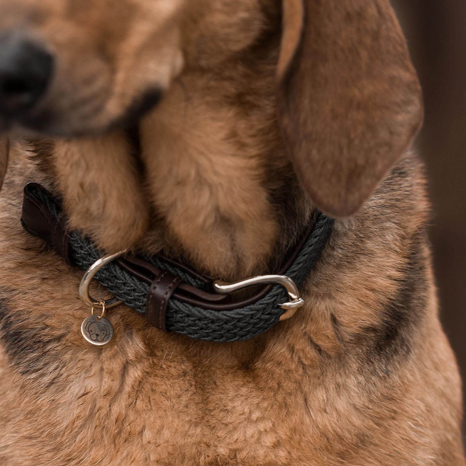 Das Hundehalsband besticht durch seine geflochtene Struktur aus hochwertigem Nylon, die nicht nur ästhetisch ansprechend ist, sondern auch für hohe Robustheit sorgt. Die edlen Farben wie Bordeaux, Navy und Grau passen perfekt zu jedem Felltyp und unterstreichen die Persönlichkeit deines Hundes. Dank des Lederimitats ist das Halsband zu 100% tierfreundlich und bietet einen luxuriösen Look.