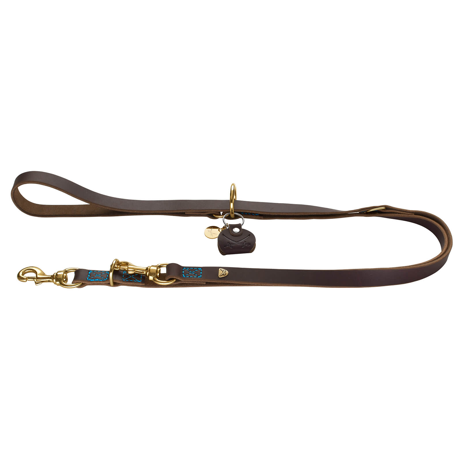 Die verstellbare Führleine Sansibar beeindruckt durch ihr zeitloses Design aus dunkelbraunem und cognacfarbenem Rindsleder. Die messingfarbenen Beschläge und das Hunter x Sansibar-Emblem verleihen ihr eine maritime Note, die an Sylt und die Sansibar erinnert. Dank der griffigen Oberfläche liegt die Leine stets sicher und angenehm in der Hand, was dir und deinem Hund maximale Kontrolle bietet.