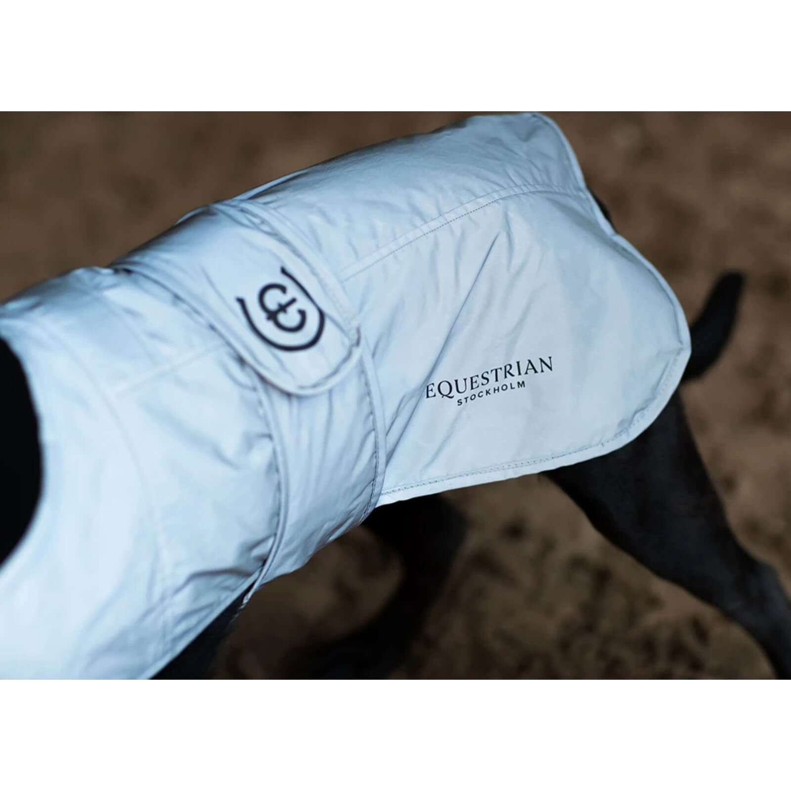 Mit ihrer gesamten Außenhülle aus reflektierendem Material ist die Hundedecke Luminous Black nicht nur ein Hingucker, sondern auch ein Sicherheitsgarant. Das schlichte Luminous Black-Design wird durch das schwarze Equestrian Stockholm-Logo stilvoll ergänzt. Dank des elastischen Bands auf der Vorderseite passt sich die Decke optimal an die Bewegungen deines Hundes an.