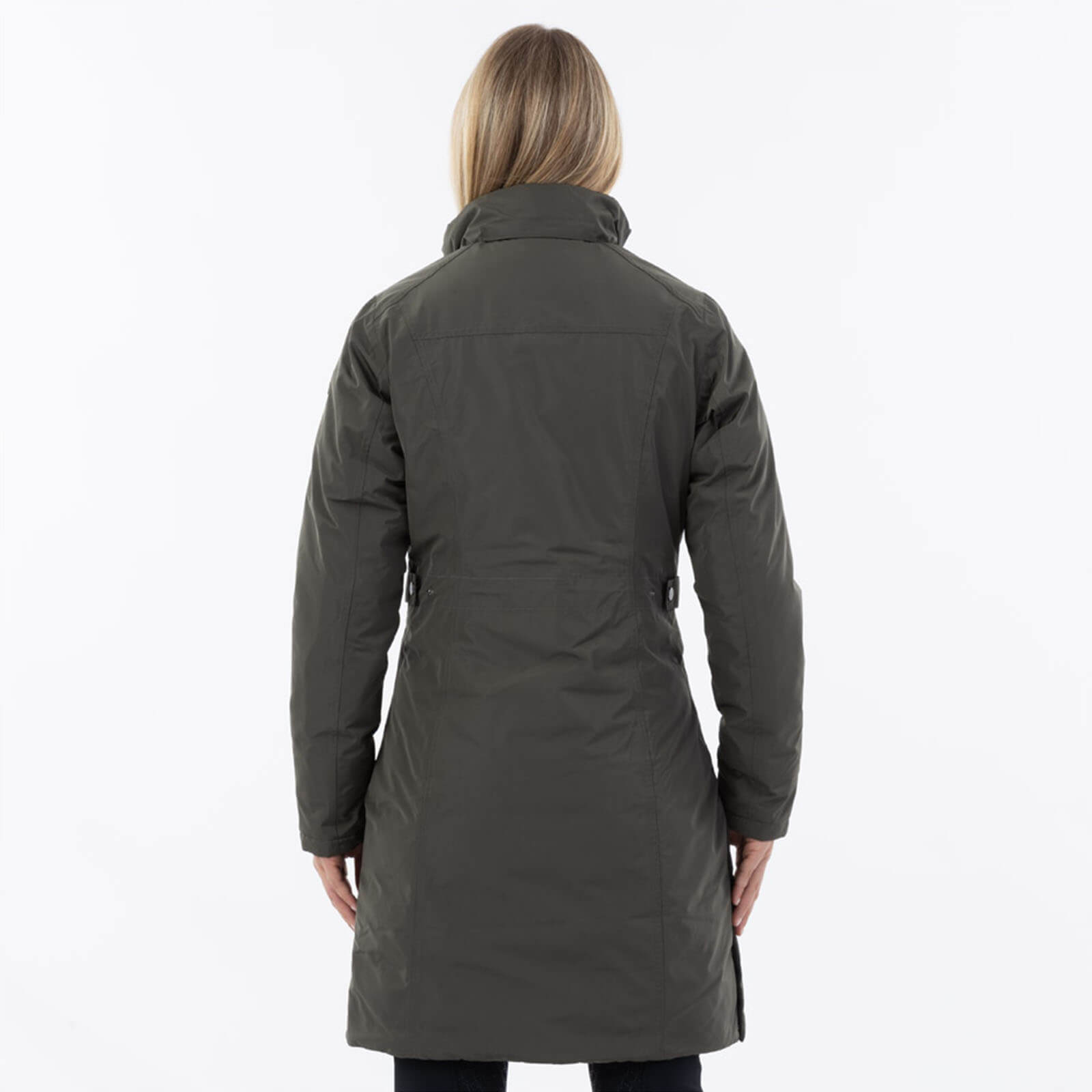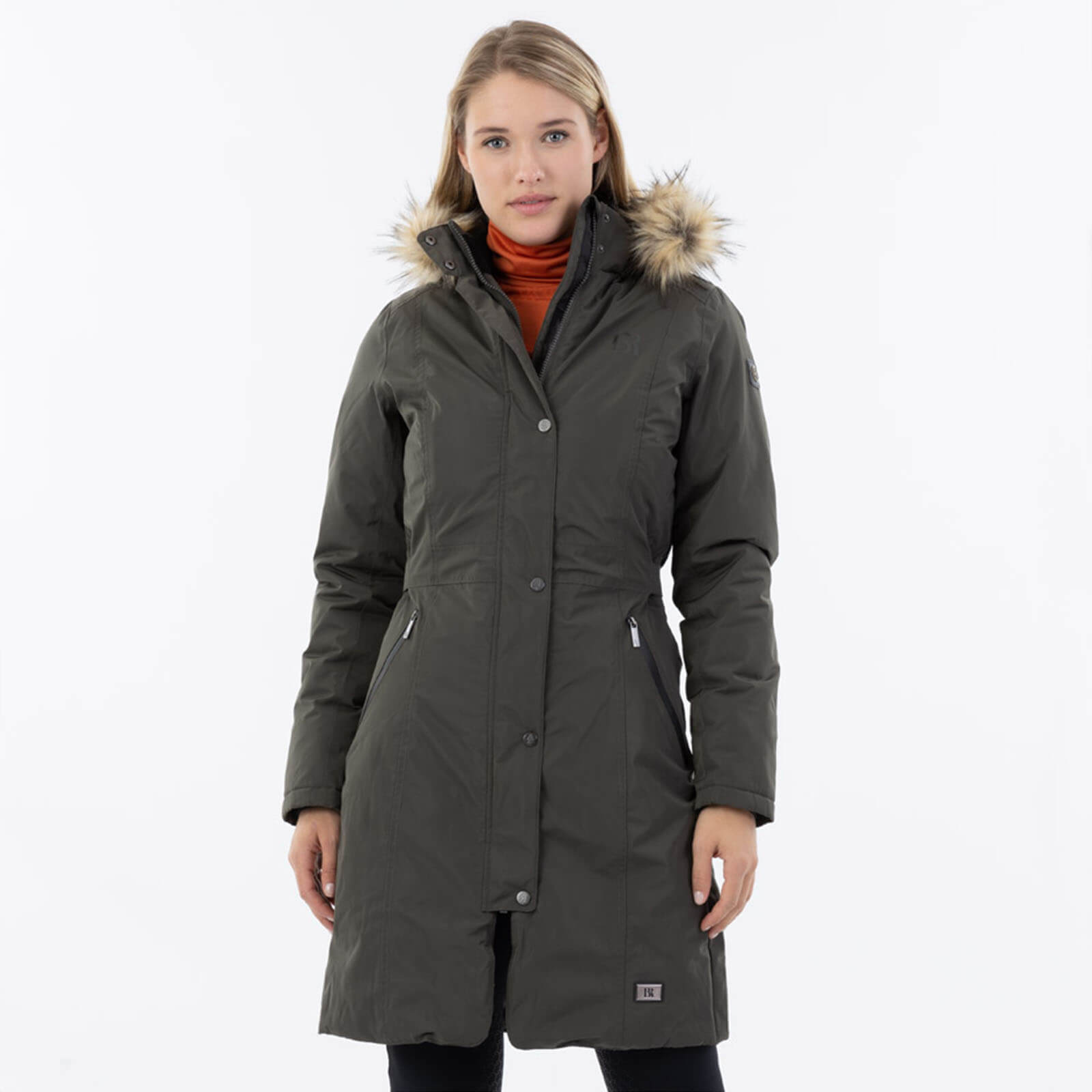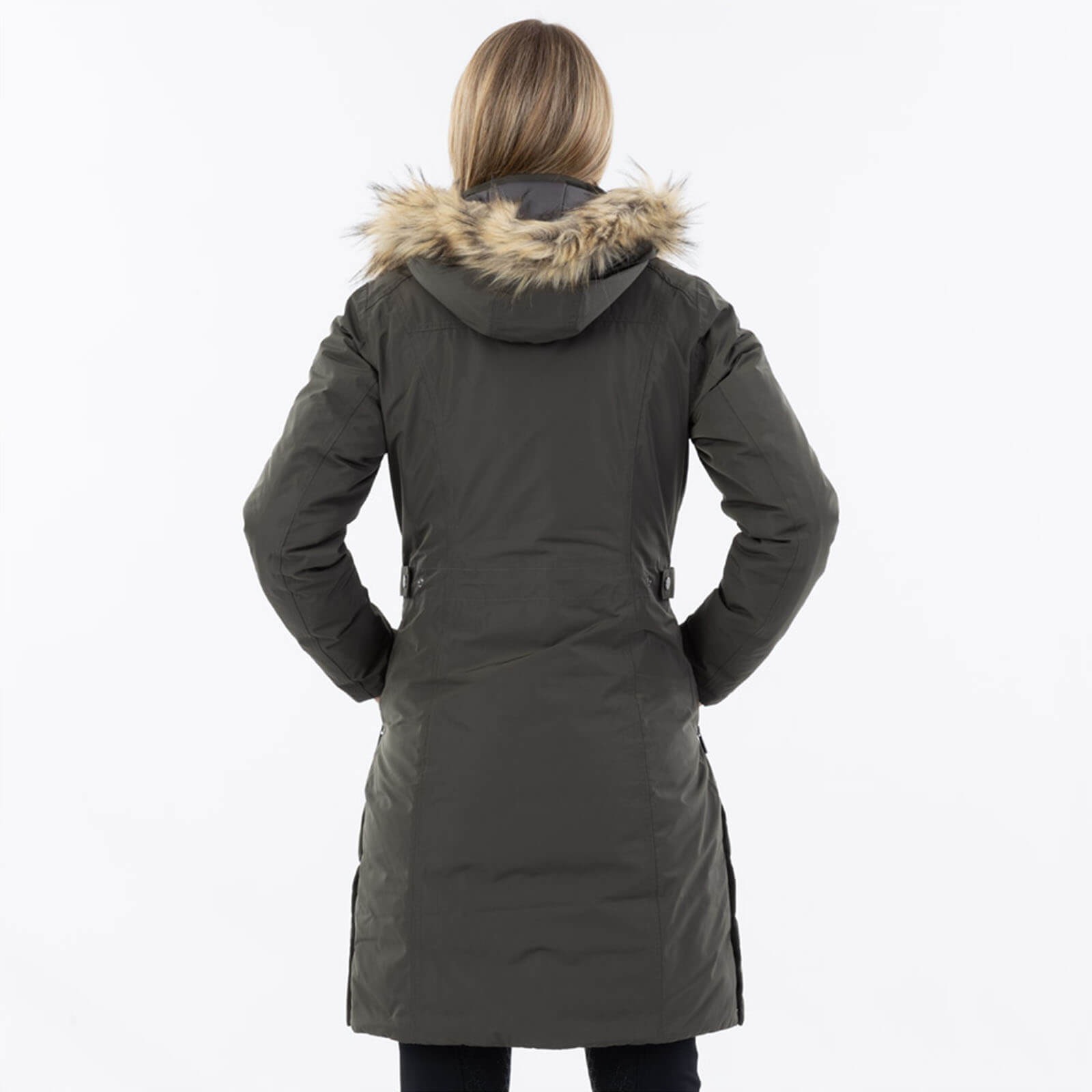 Der Mantel in der trendigen Farbe Beluga besticht durch seine moderne Silhouette und die verstellbare Taille, die dir einen individuellen, maßgeschneiderten Look ermöglicht. Die abnehmbare Kapuze mit Kunstpelzkragen verleiht dem Mantel eine luxuriöse Optik, während die praktischen Rückenschlitze für optimale Bewegungsfreiheit sorgen – perfekt für den Alltag und den Ritt im Sattel.