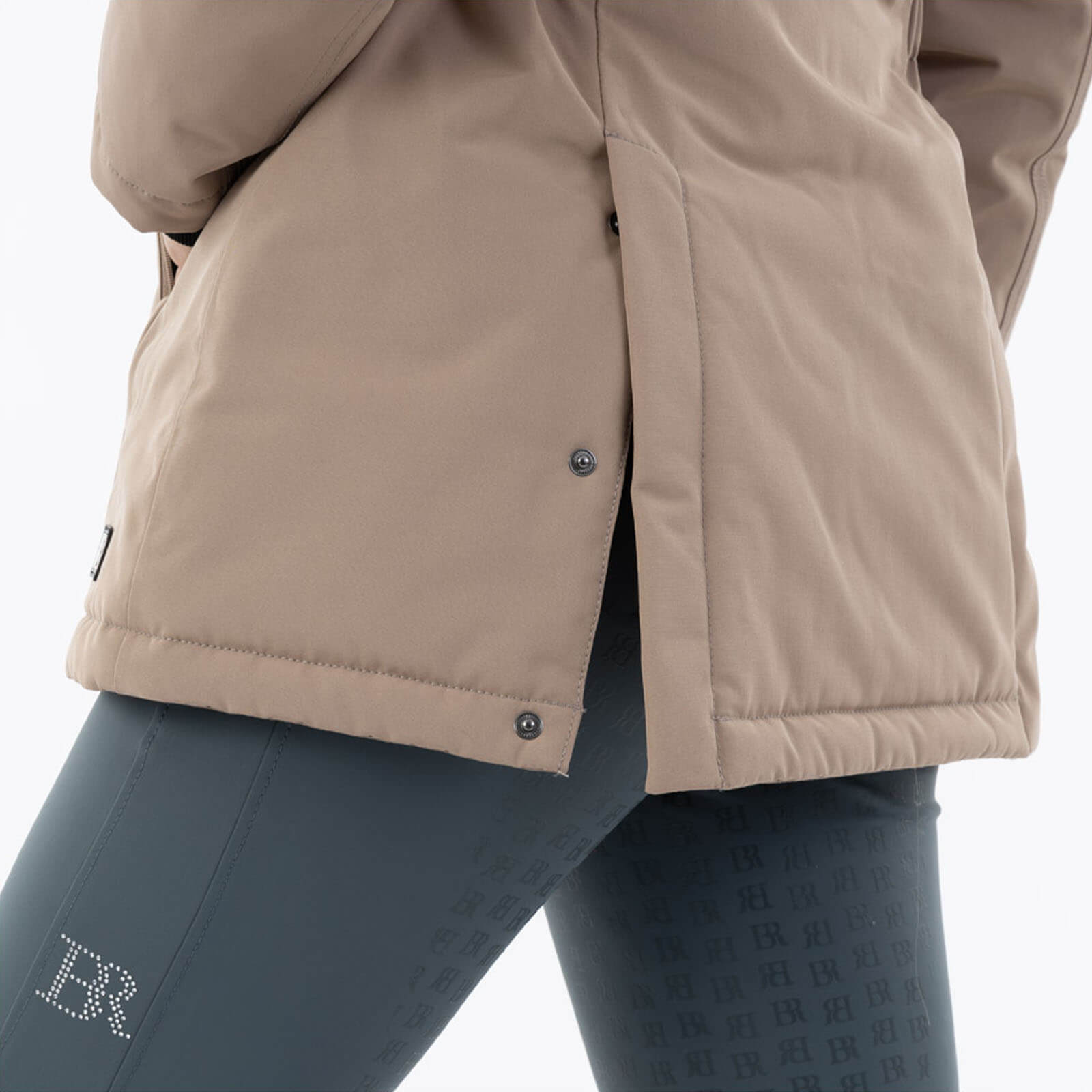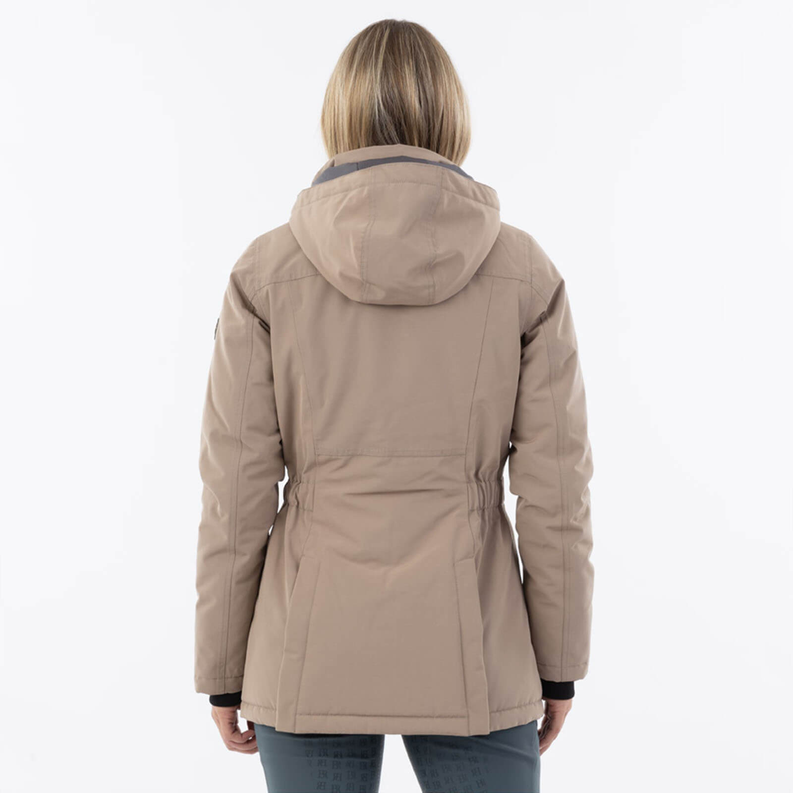 Der Mantel besticht durch seine stilvolle Farbe Taupe Gray, die jedem Outfit eine edle Note verleiht. Die elastische Taille sorgt für eine figurbetonte Silhouette, während die abnehmbare Kapuze dir Flexibilität bietet. Mit den zwei Rückenschlitzen genießt du optimale Bewegungsfreiheit beim Reiten.