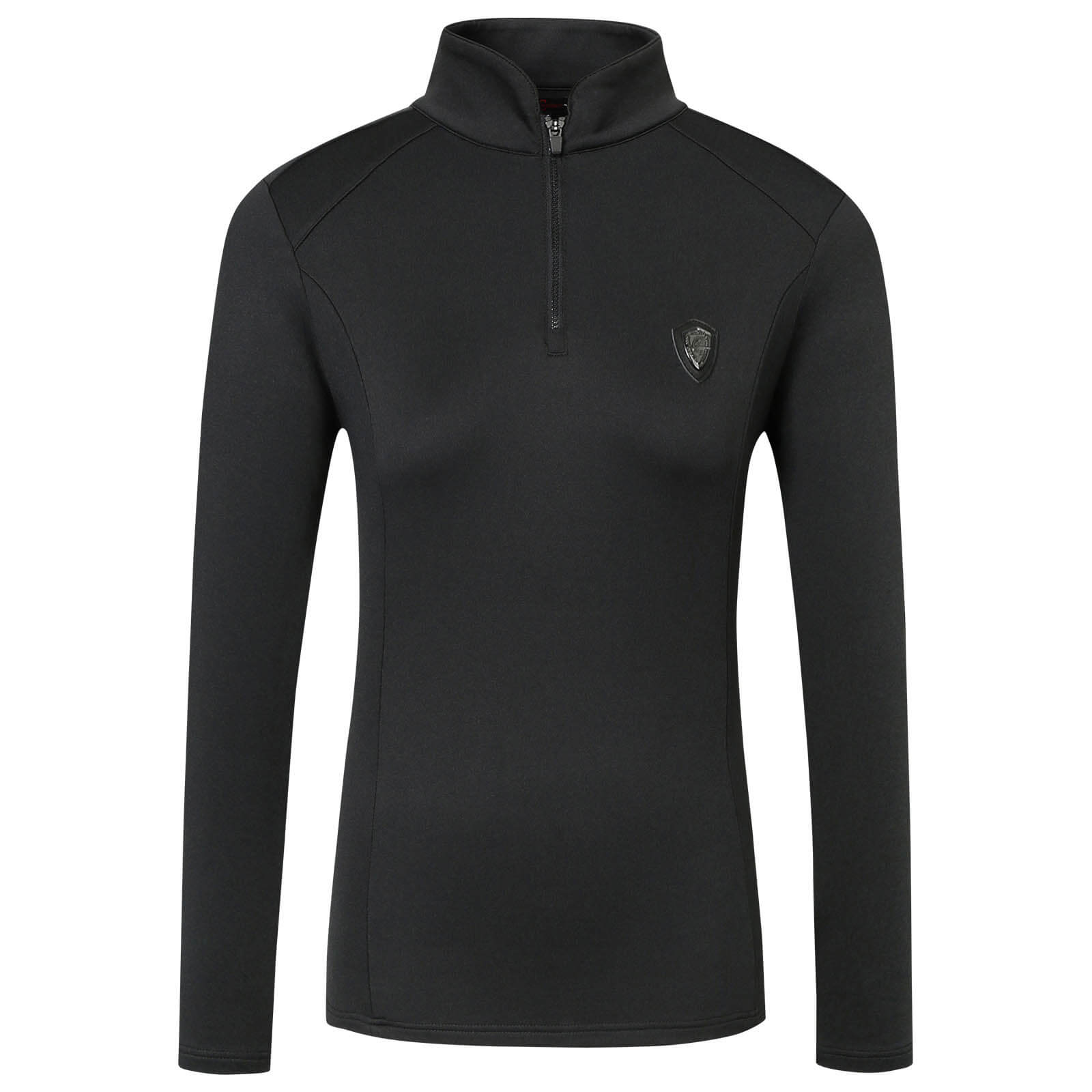 Das Shirt Damen HW 2023 Active Shirt beeindruckt durch sein elegantes Design in den Farben Black, Dark Navy, Oak Brown und Jade Green. Der sportive Stehkragen mit Reißverschluss verleiht dem Shirt eine dynamische Note, während die dezente Logo-Applikation am Rücken als modischer Akzent dient. Die körperbetonte Passform sorgt für einen stilvollen Auftritt sowohl im Stall als auch in der Freizeit.