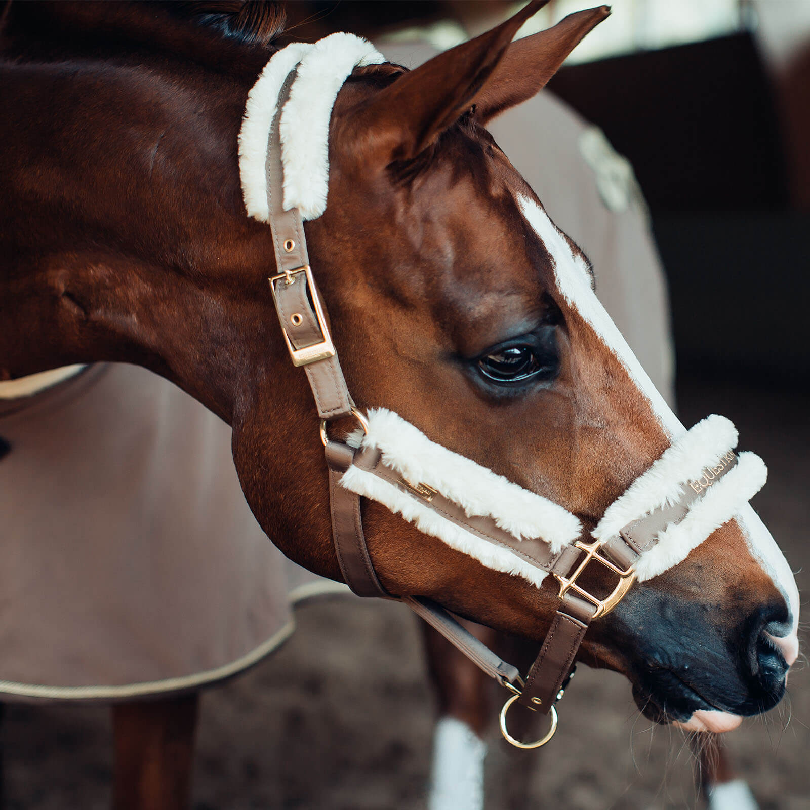 Halfter mit Strick Champagne mit Fell - Eleganz trifft Funktionalität für dein Pferd