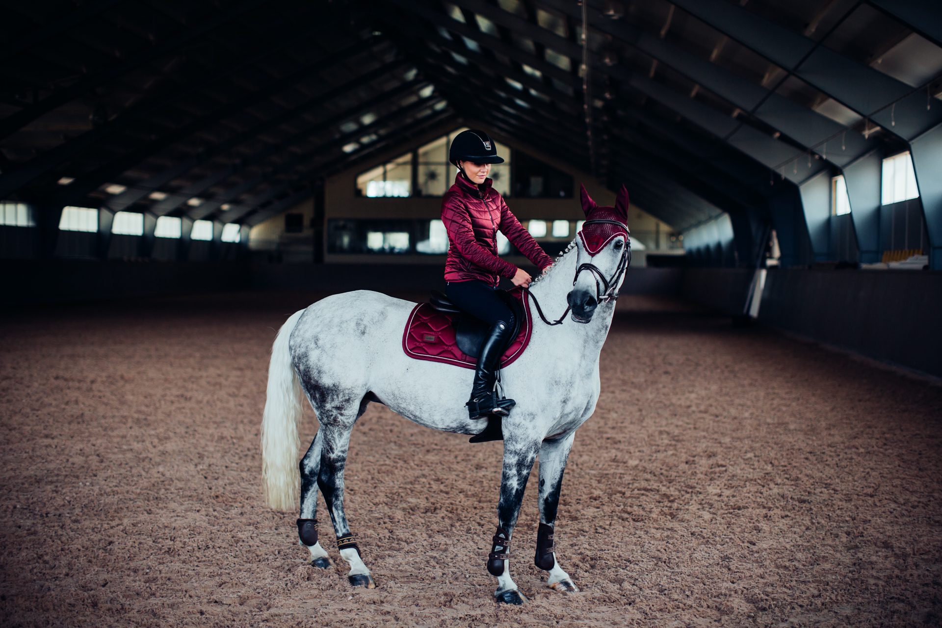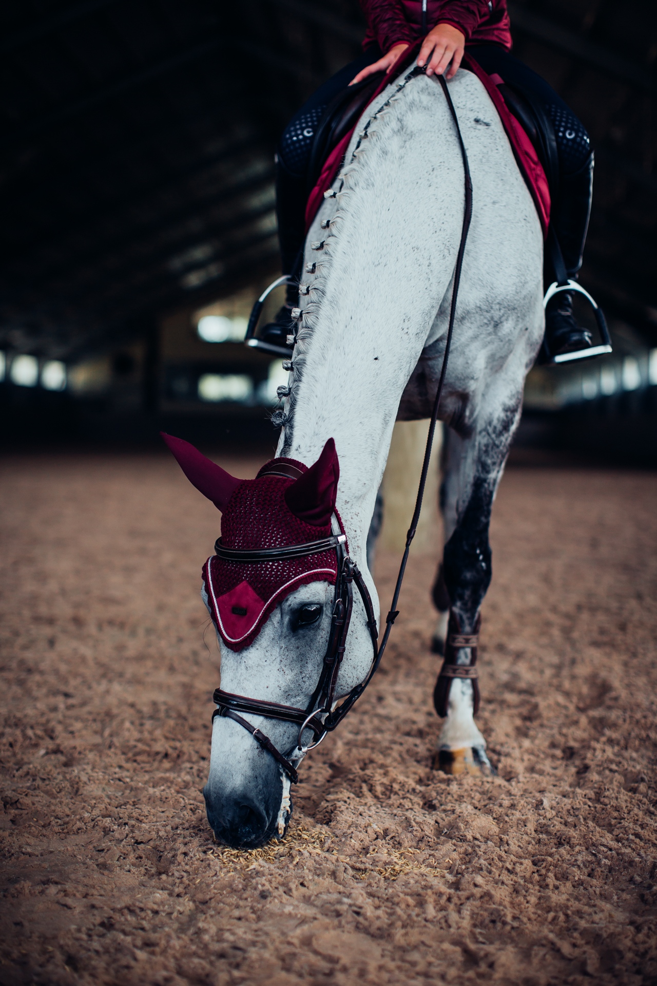 Mit ihrer tiefen Bordeaux-Farbe und der edlen silberfarbenen Paspelierung zieht die Fliegenmütze alle Blicke auf sich. Das gehäkelte Design verleiht der Mütze nicht nur eine ansprechende Optik, sondern sorgt auch für optimale Luftzirkulation. Der Metallbadge von Equestrian Stockholm unterstreicht die hochwertige Verarbeitung und verleiht deinem Pferd einen luxuriösen Look.