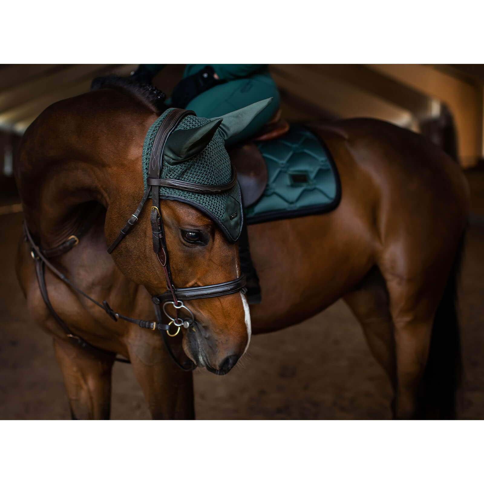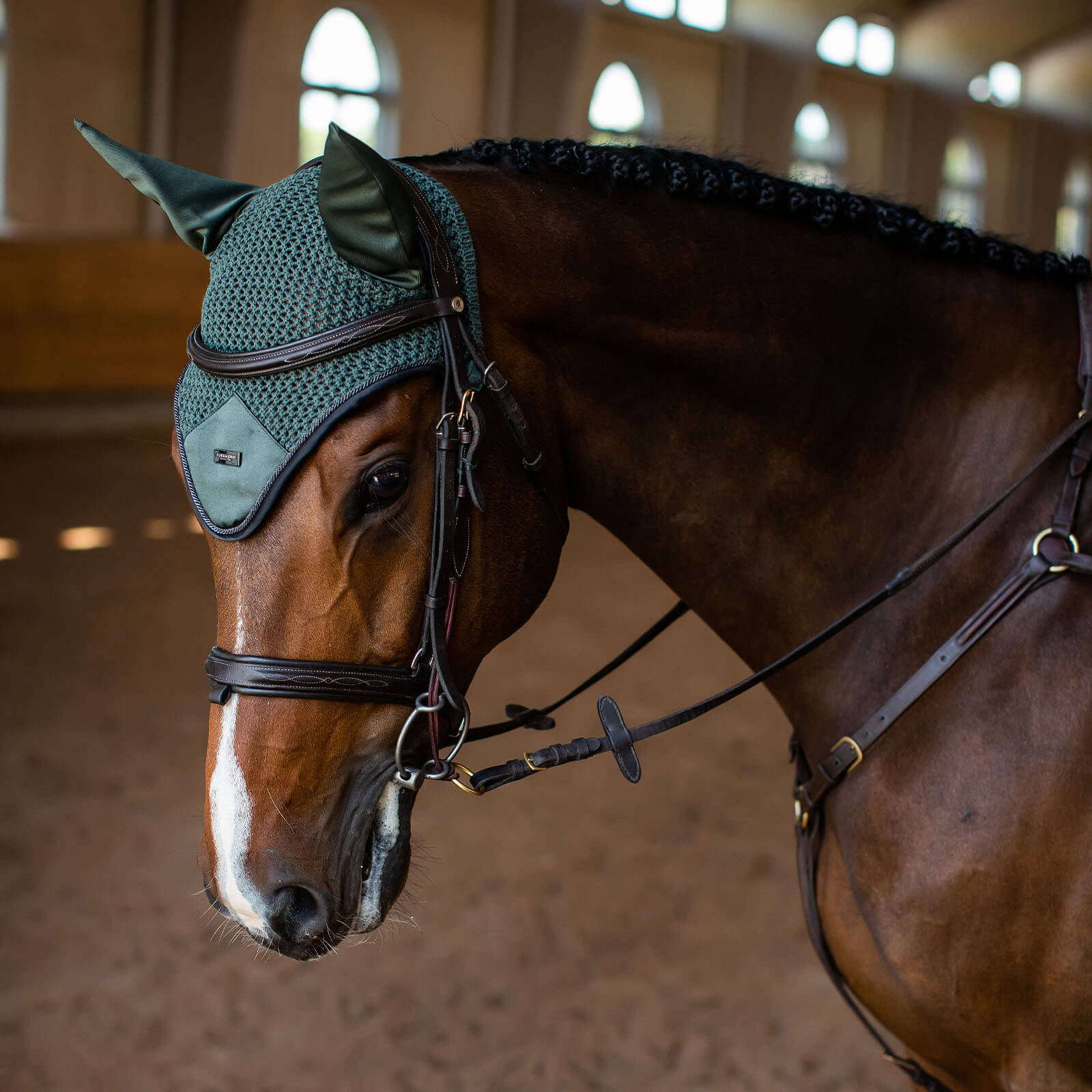 Fliegenmütze Sycamore Green Fliegenohren Fliegenhaube von Equestrian Stockholm ist die perfekte Wahl für stilbewusste Reiter, die ihrem Pferd Komfort und Schutz bieten möchten. Diese edle Fliegenhaube kombiniert ein ansprechendes Design mit herausragender Funktionalität, um sowohl Insekten als auch störende Geräusche fernzuhalten, während das dunkelgrüne Design Eleganz auf jedem Turnierplatz versprüht.