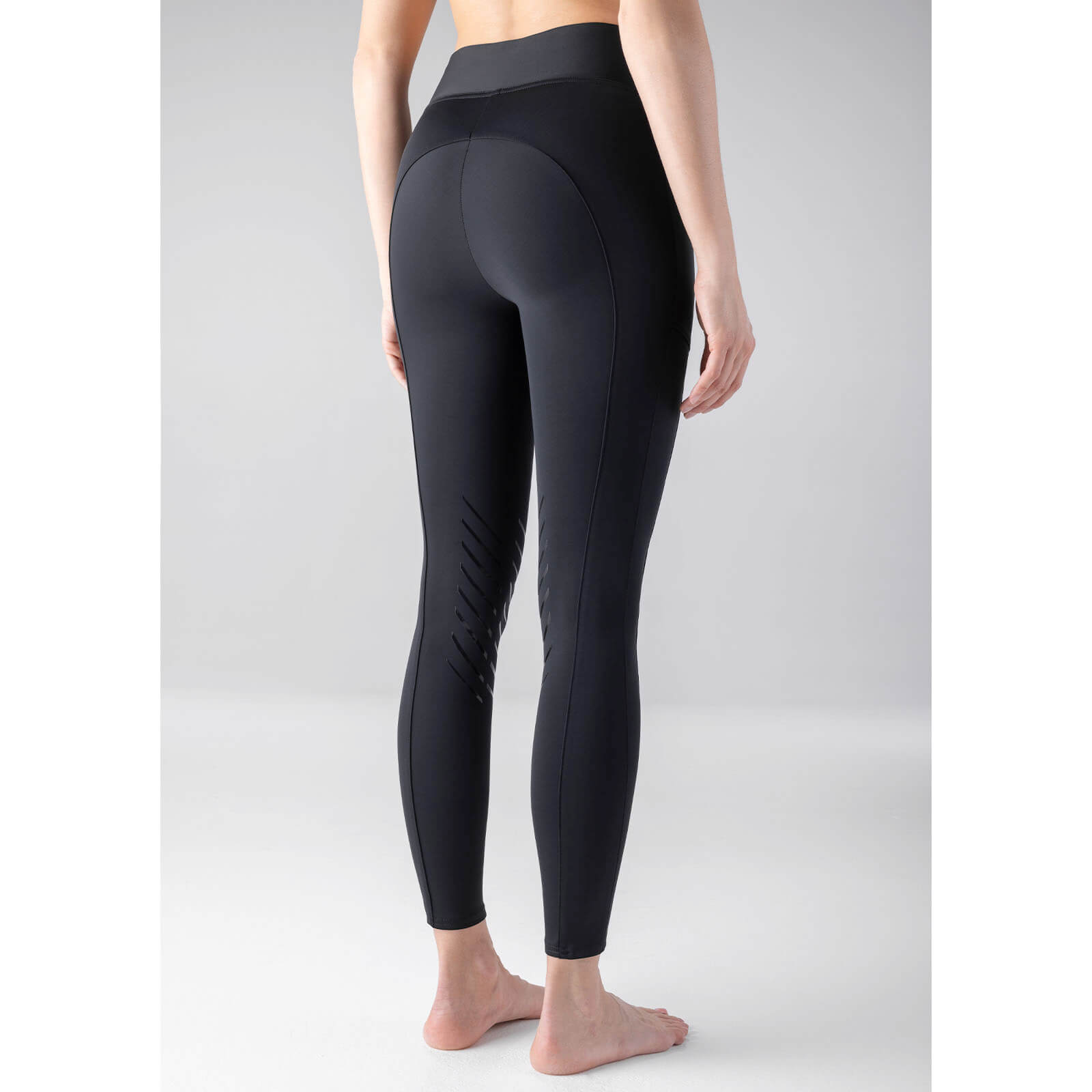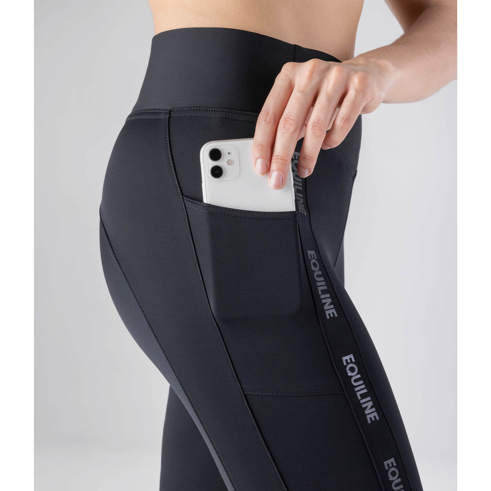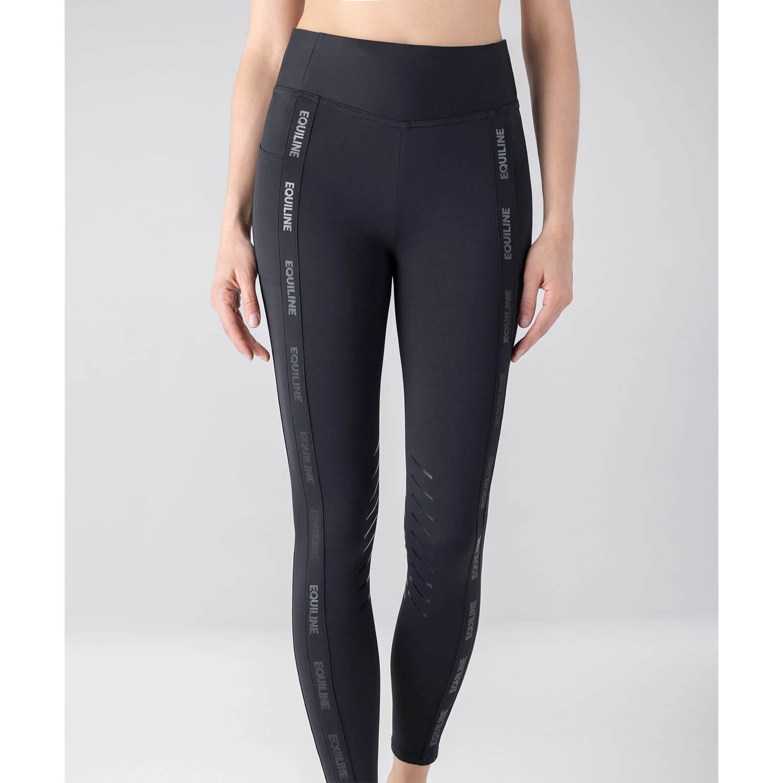 Die Equiline Reitleggings zeichnen sich durch ein elegantes, schwarzes Design aus, das durch das durchscheinende Logo an den Beinen einen modernen Touch erhält. Diese optischen Highlights machen sie nicht nur zu einem funktionellen Kleidungsstück, sondern auch zu einem modischen Begleiter im Reitsport.