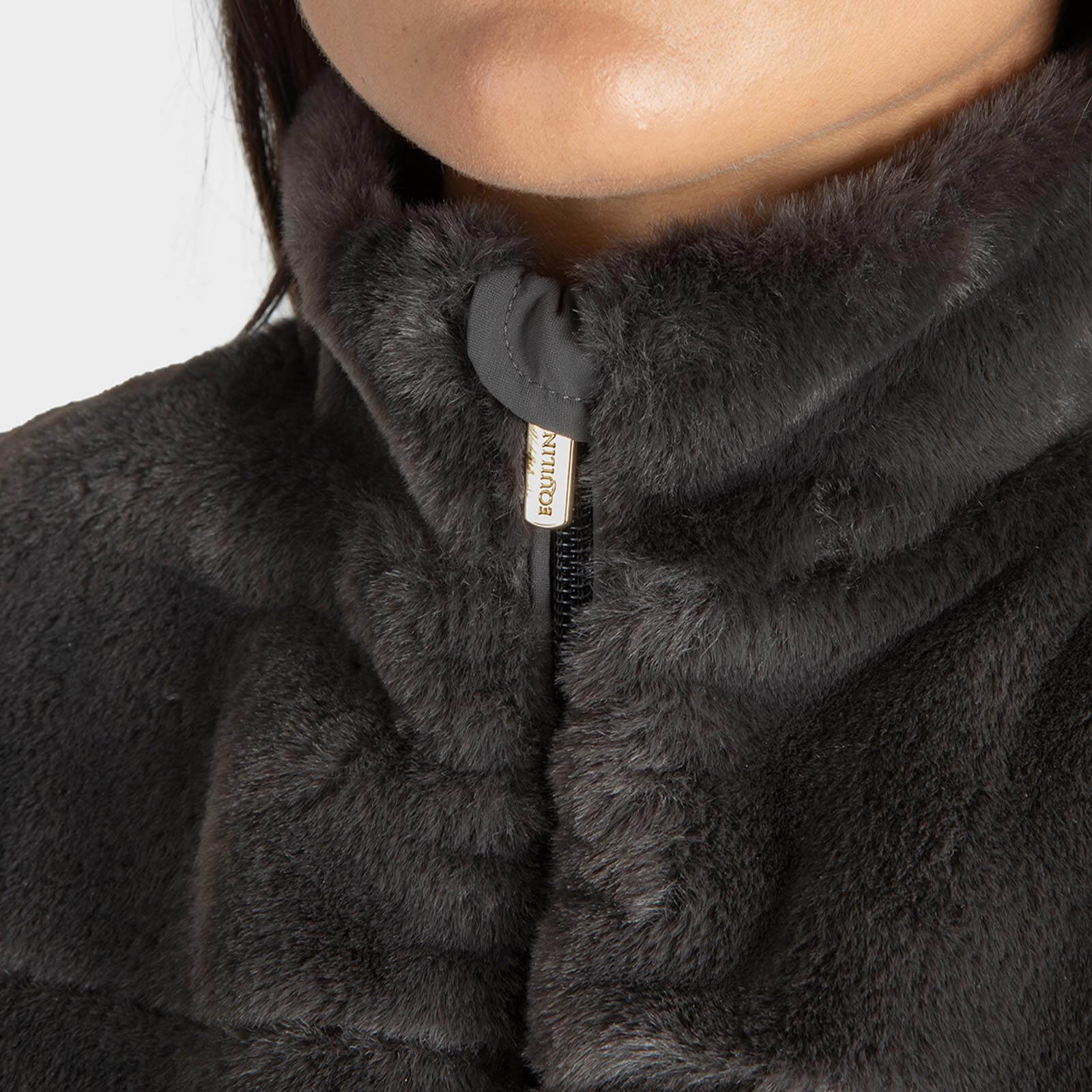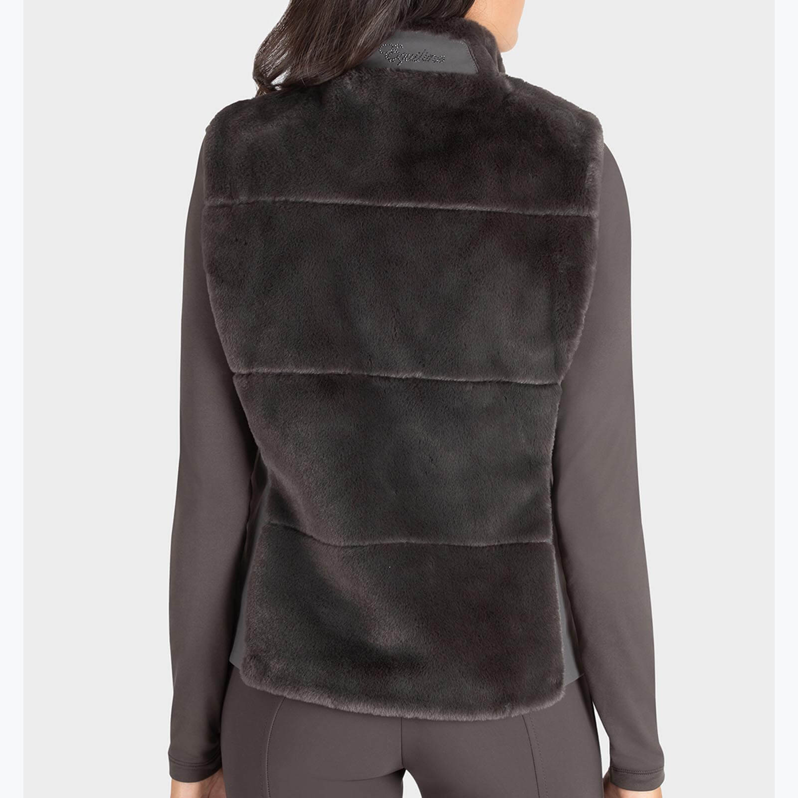 Die Weste Damen Evilae HW 2023 besticht durch ihr modernes Design in der trendigen Farbe Liquorice. Der Equiline Ton-in-Ton-Schriftzug aus Mikronieten verleiht dem Unterkragen ein stilvolles Detail. Durch die Kombination aus Ökopelz und Softshell-Stretch-Seitenteilen bietet die Weste nicht nur optische Highlights, sondern auch praktische Flexibilität und Bewegungsfreiheit.