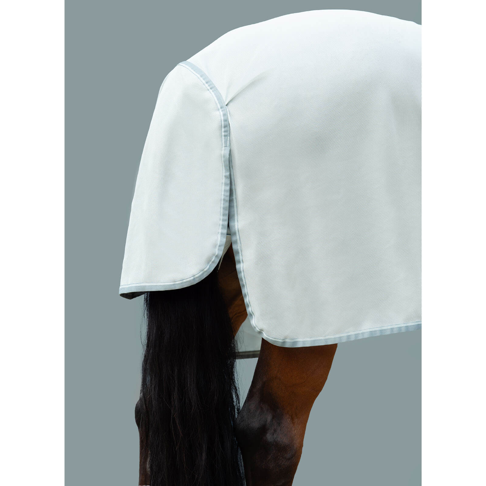 Hergestellt aus leichtem, engmaschigem Polyester, hält diese Fliegendecke lästige Insekten effektiv fern und bietet gleichzeitig ausgezeichnete Atmungsaktivität. Das glatte Nylonmaterial im Mähnen-, Brust- und Schweifbereich verhindert unangenehmes Scheuern. Dank des abnehmbaren Halsteils kannst du die Decke flexibel anpassen und so den Schutz individuell gestalten.