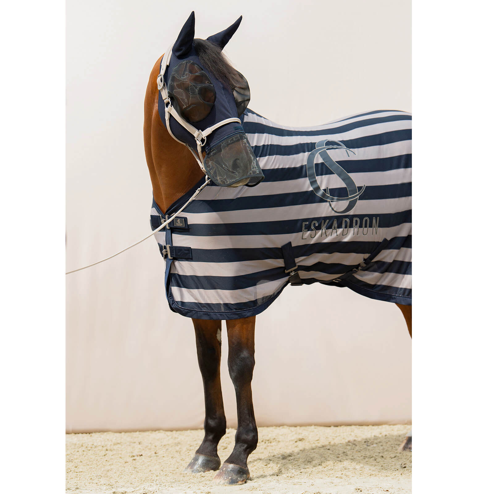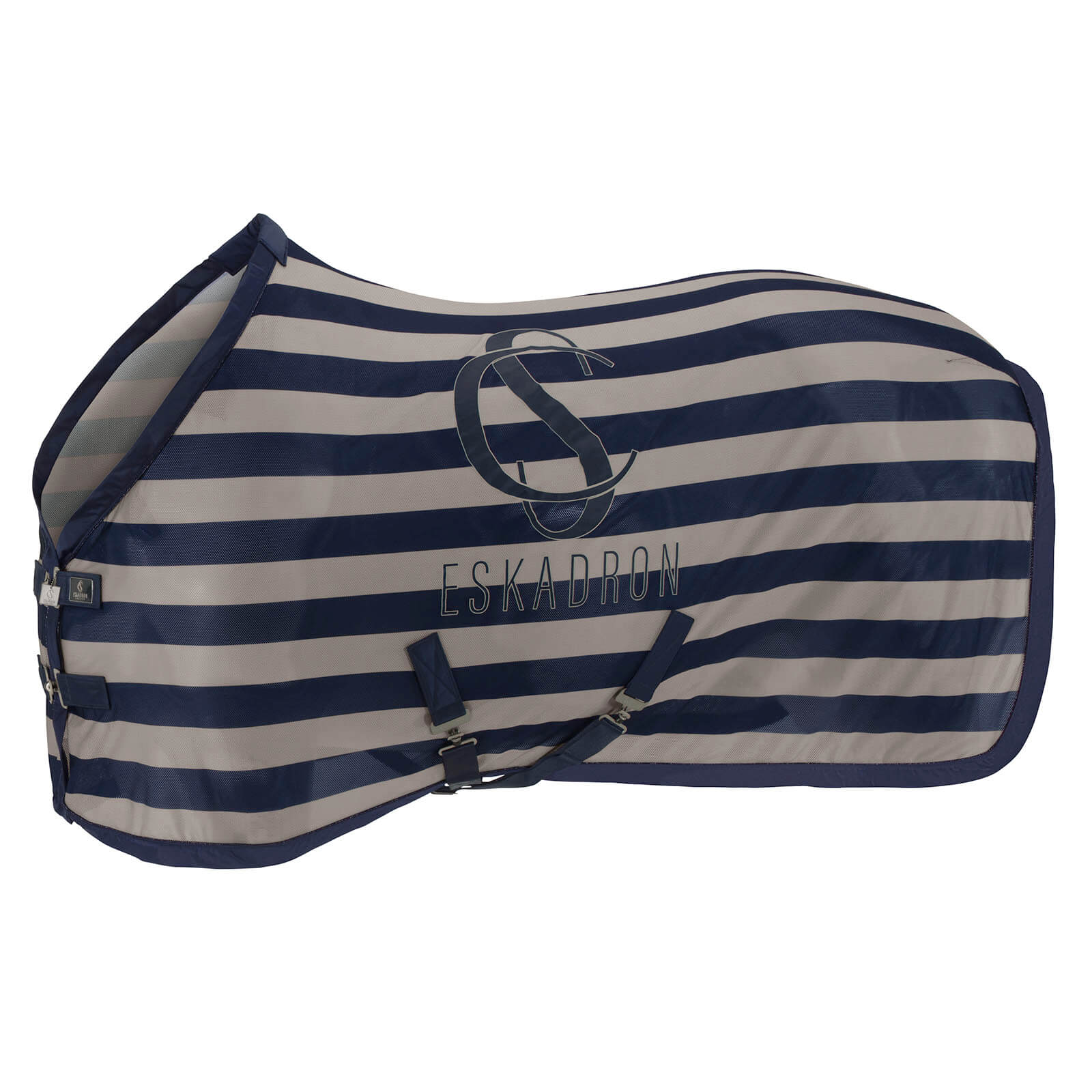 Die Fliegendecke Cooler Fly Classic Sports FS 2024 besticht durch ihre stilvolle Farbkombination von Navy und Velvet Taupe. Der beidseitige Eskadron-Print und die dezente Lurex-Biese auf der Glossy-Einfassung verleihen der Decke eine edle Optik. Gleichzeitig sorgt das engmaschige Cooler-Netzmaterial für optimalen Luftdurchlass und hält lästige Insekten fern.