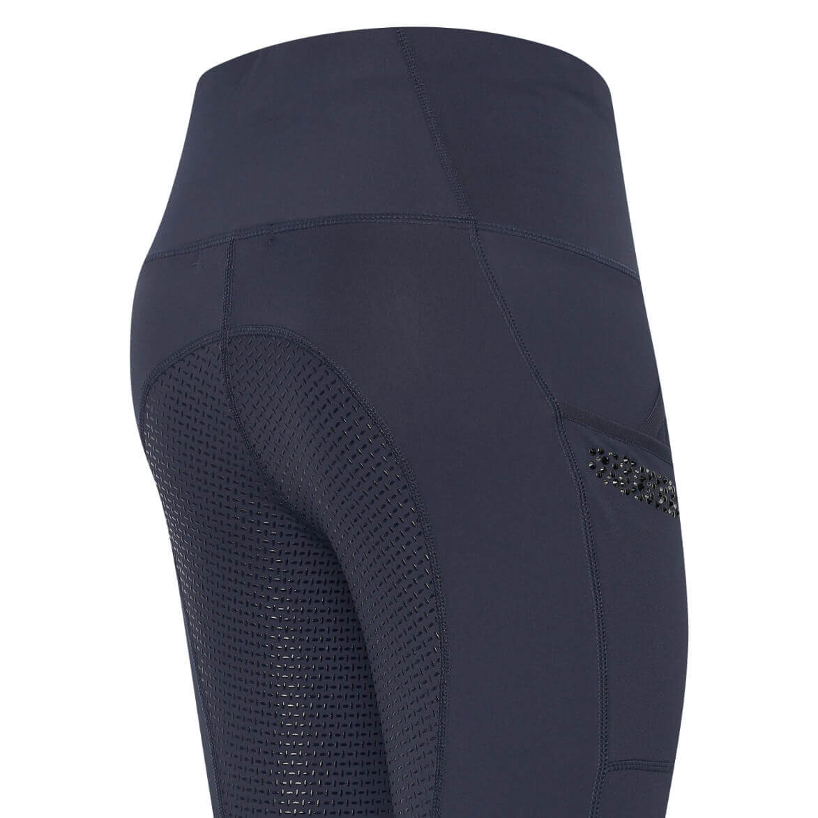 Die Reitleggings bestechen durch ihre organische Designlinien und feminine Schnittführung, die nicht nur ästhetisch ansprechend, sondern auch funktional sind. Die Farboptionen in Navy und Black passen sich deinem persönlichen Stil an, während das Kristallsteinmotiv auf der Handytasche ein edles Highlight setzt. Diese Details machen die Reitleggings zu einem unverzichtbaren Teil deiner Reitgarderobe.