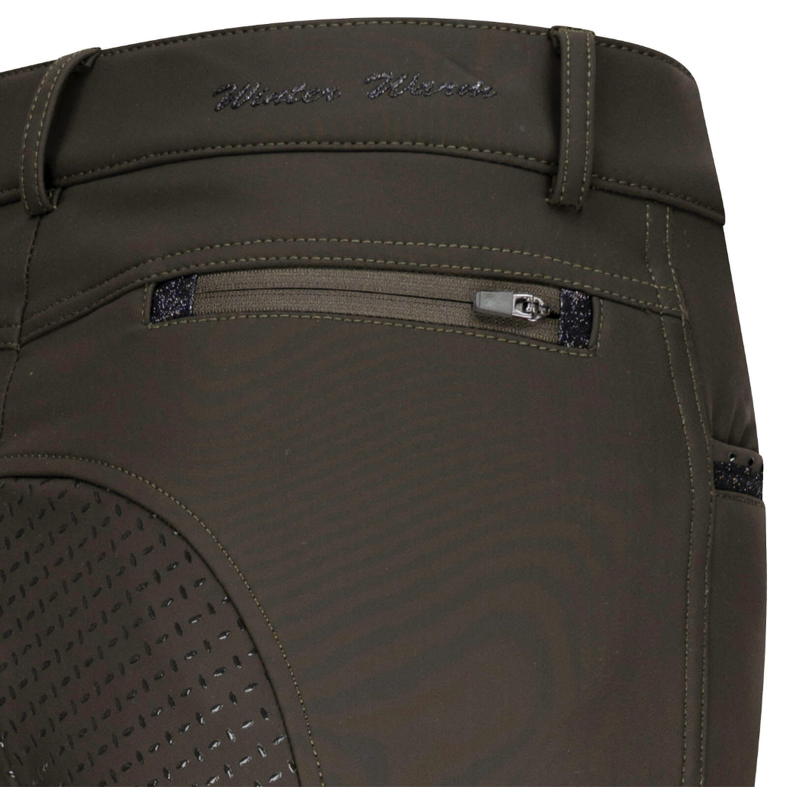 Die Winterreithose präsentiert sich in einem modisch-zeitlosen Army-Grün, das nicht nur gut aussieht, sondern auch vielseitig kombinierbar ist. Der Full-Grip-Besatz sorgt für optimalen Halt im Sattel, während das schlanke Design eine elegante Silhouette zaubert. So bist du nicht nur funktional, sondern auch stilvoll unterwegs.