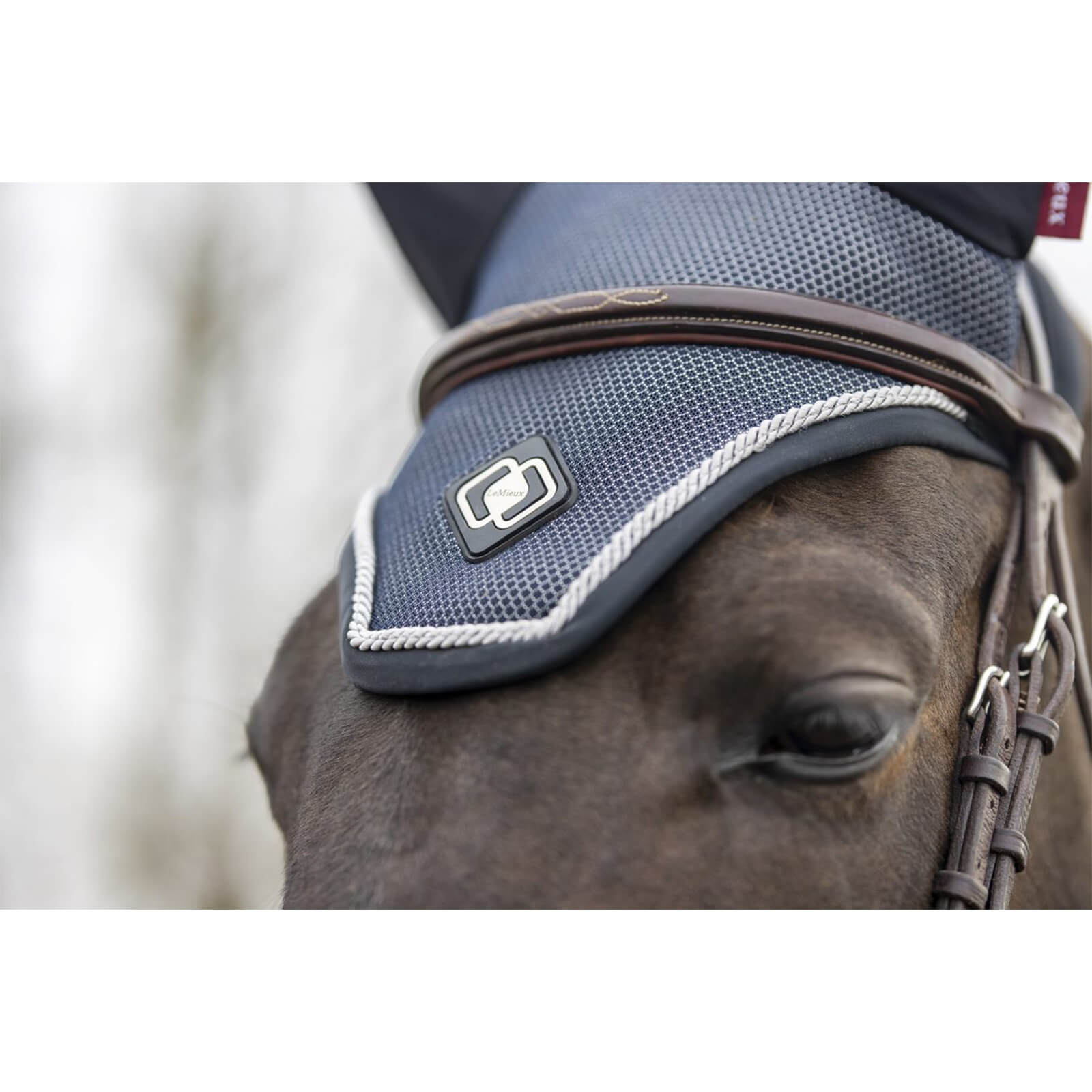 Die Fliegenmütze LM Ultramesh Fly Hood besticht durch ihre elegante Dark Navy Farbe, die jedem Pferd einen edlen Look verleiht. Das raffinierte Design mit einem tieferen Bereich hinter den Ohren sorgt nicht nur für einen perfekten Sitz, sondern auch für ein modisches Statement auf jedem Turnier oder Ausritt.