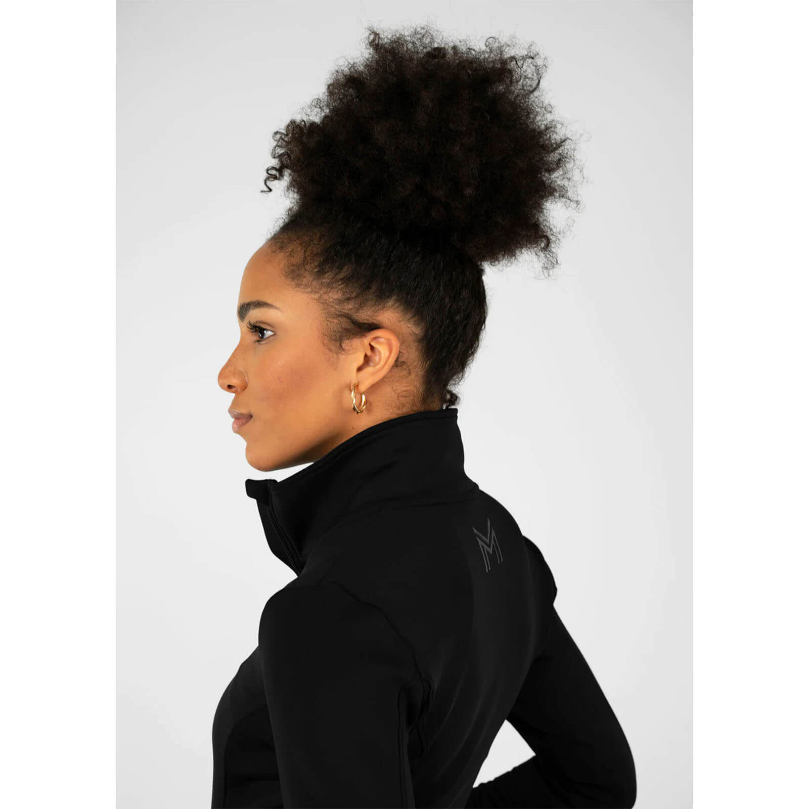 Die Jacke besticht durch ihren eleganten, femininen Schnitt, der jede Figur vorteilhaft umschmeichelt. Die Ton-in-Ton-Logos am linken Arm und Rücken verleihen der Fleecejacke einen dezenten, aber luxuriösen Look. Zudem sorgt die schwarze Farbgebung für eine zeitlose Optik, die sich einfach kombinieren lässt.