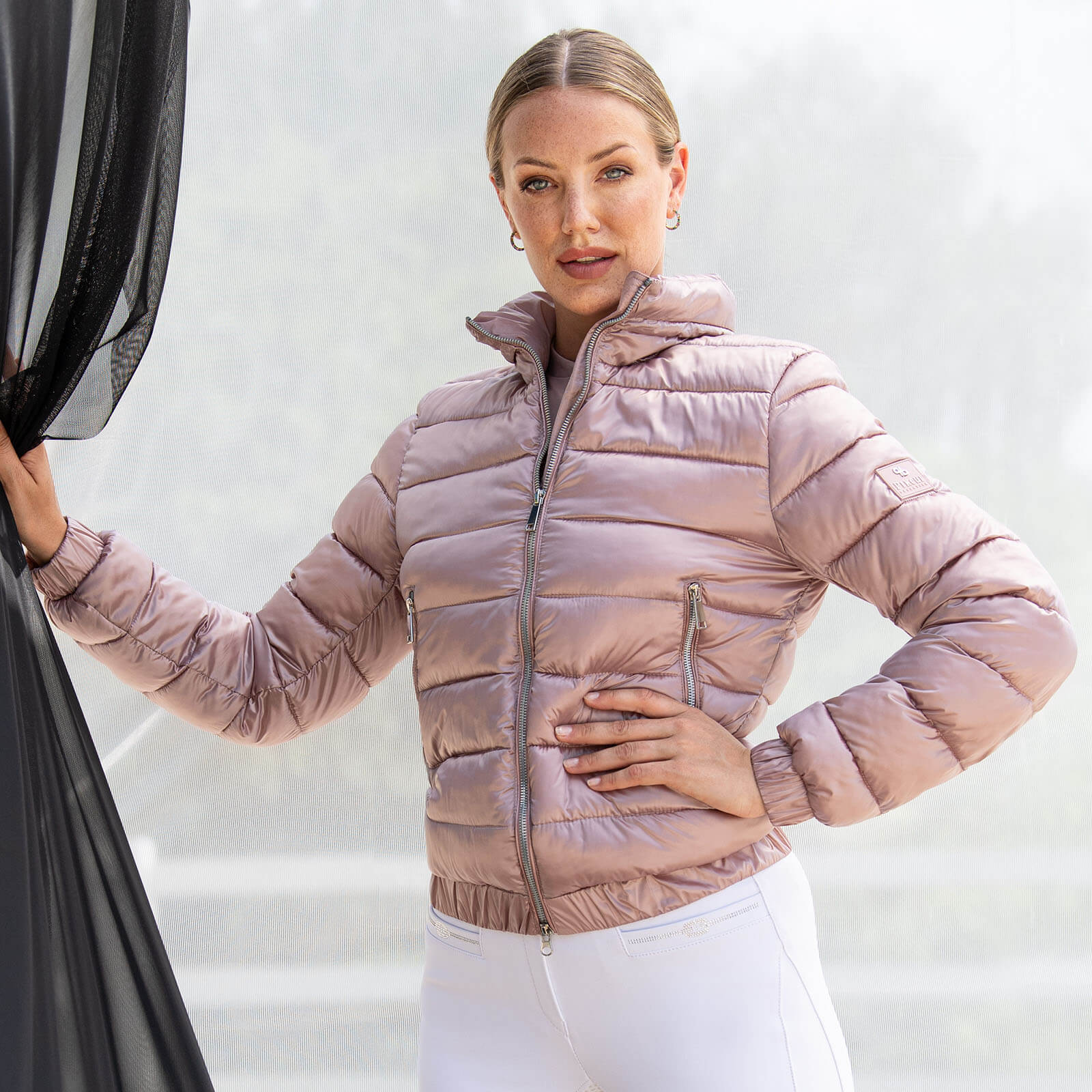 Das schimmernde Steppdesign der Pikeur Quilt Jacket in der edlen Farbe Pale Mauve verleiht dir einen zeitlosen Look. Der charakteristische Stehkragen und die Metalloptik-Reißverschlüsse runden das elegante Erscheinungsbild ab. Dieses Design bietet nicht nur optische Vorzüge, sondern auch praktischen Nutzen im Reitsport.