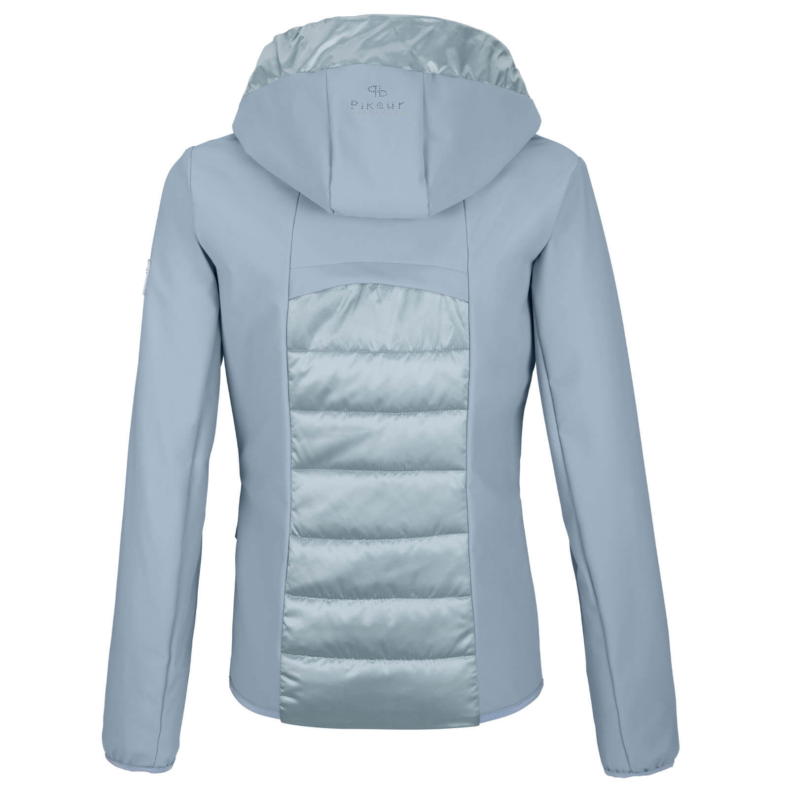 Die Hybrid-Jacket besticht durch ihr modernes Design in den stilvollen Farben Pastel Blue und Pale Mauve. Die außen liegende Satinware mit ihrem dezenten Schimmer und die exquisite Rhinestones Applikationen setzen modische Akzente. Die leicht angeraute Innenseite sorgt für ein angenehm softes Tragegefühl, das dich auch an kühleren Tagen wärmt. Die feste Kapuze mit breiten Satinkordeln und Doppelstoppern ist nicht nur ein praktisches Detail, sondern unterstreicht den eleganten Look.