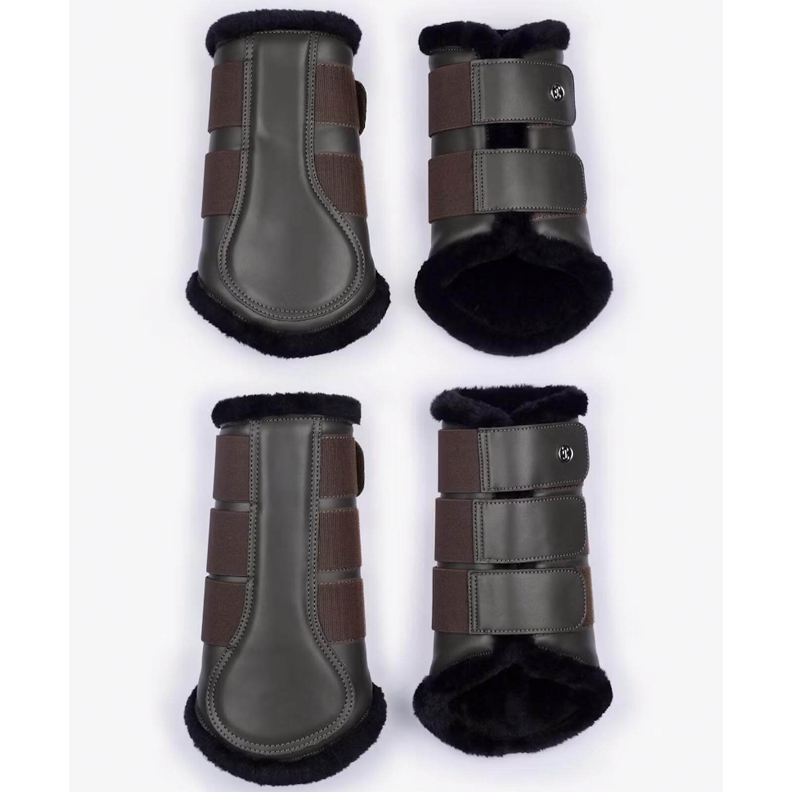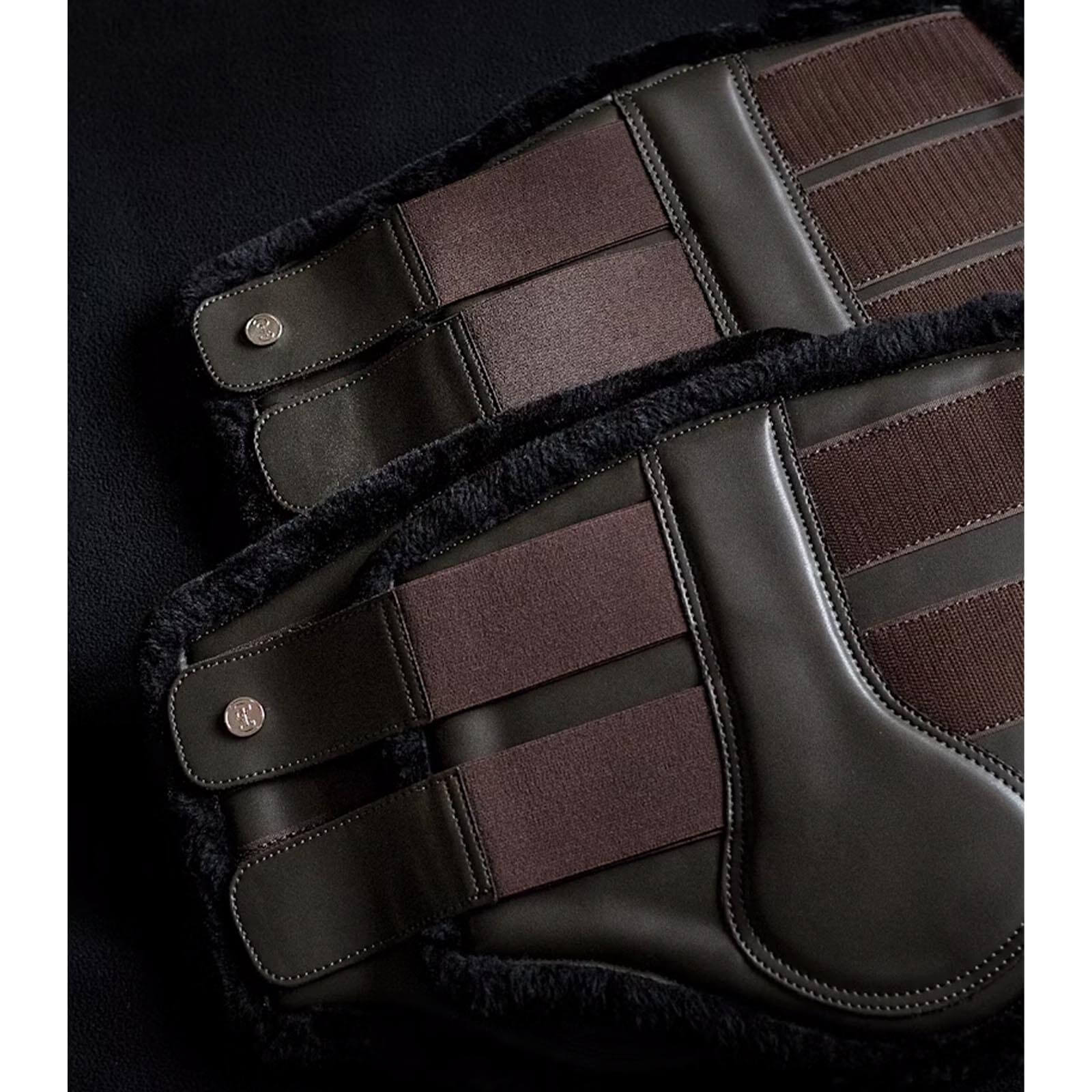 Mit einem hochwertigen Polyester-Außenmaterial und einem weichen Kunstfell-Innenfutter bieten die Gamaschen Premium FS 2024 den perfekten Schutz für die empfindlichen Pferdebeine. Das strapazierfähige Material ist wasser- und schmutzabweisend, was die Pflege erleichtert und die Lebensdauer erhöht. Diese technischen Merkmale machen die Gamaschen ideal für den intensiven Einsatz im Springsport und beim Geländereiten.