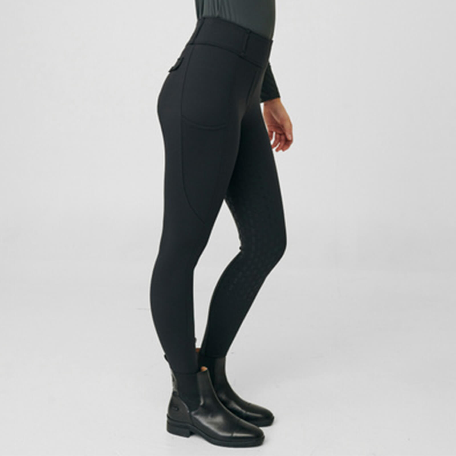 Die Reitleggings Katja FG sind ein wahrer Blickfang. Erhältlich in den Farben Black, Warm Grey und Smokey Teal, passen sie sich jedem Reitoutfit perfekt an. Das breite Taillenband mit überkreuzten Gürtelschlaufen sorgt für eine attraktive Silhouette und bietet gleichzeitig praktischen Nutzen. Die Imitationstaschen hinten verleihen einen klassischen, eleganten Look.