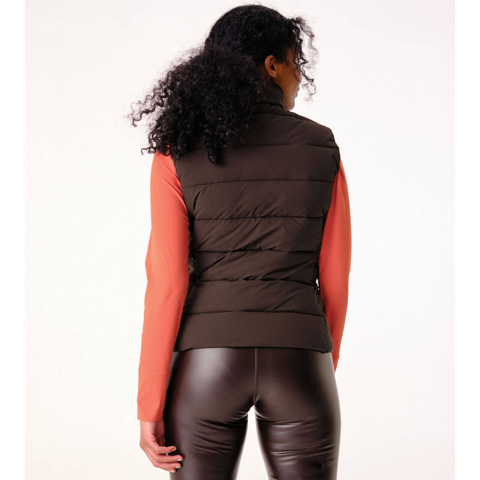 Die Weste Damen Joan HW 2023 besticht durch ihr edles, horizontal gestepptes Design in einem satten Dunkelbraun. Der stilvolle Stehkragen und die versteckten Druckknöpfe in Gun-Metal-Optik verleihen der Weste einen eleganten und stromlinienförmigen Look. Die nicht gesteppten Seiteneinsätze sorgen für eine schmeichelhafte Silhouette, die deine Figur optimal zur Geltung bringt.