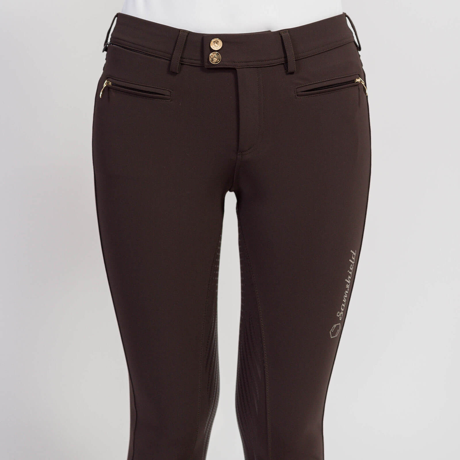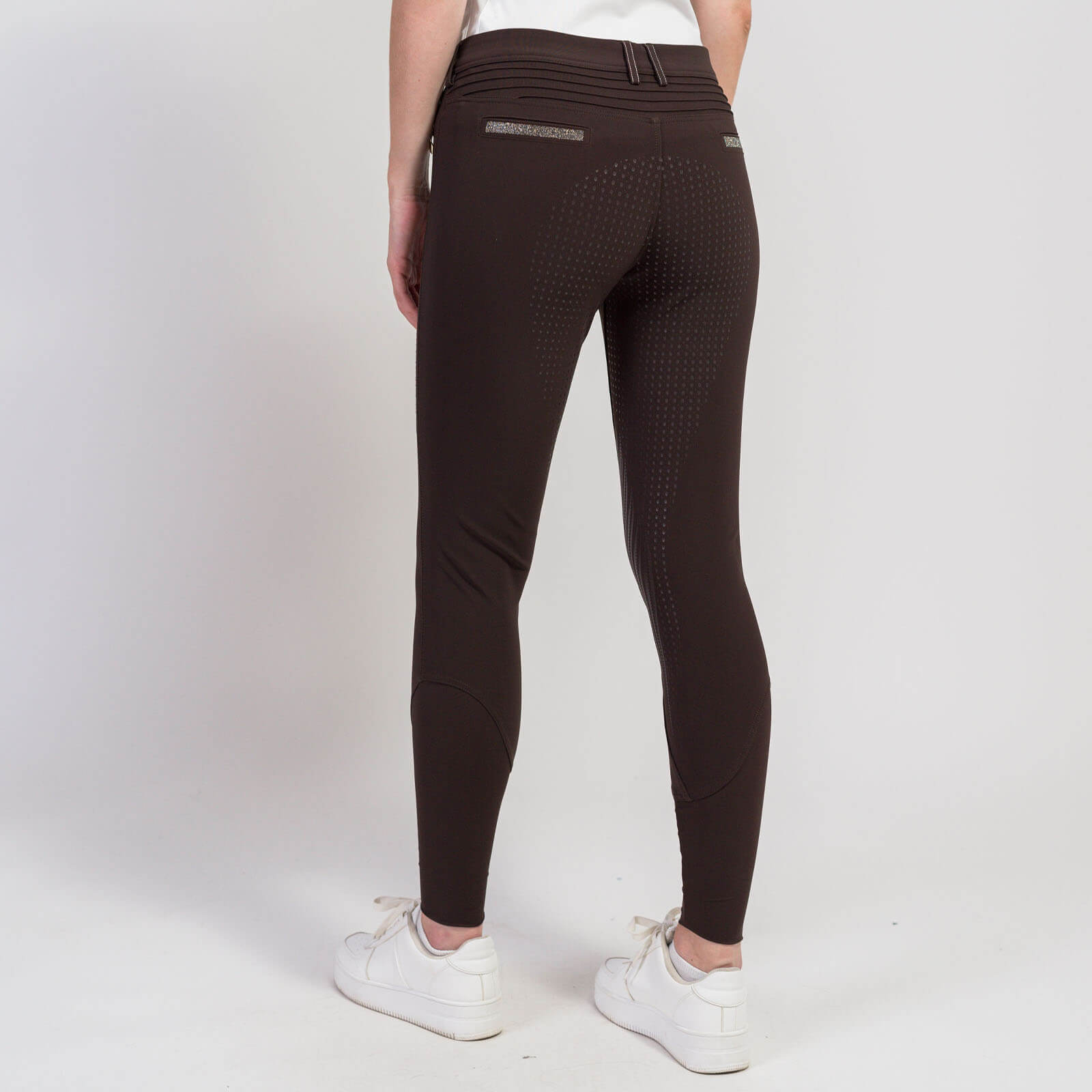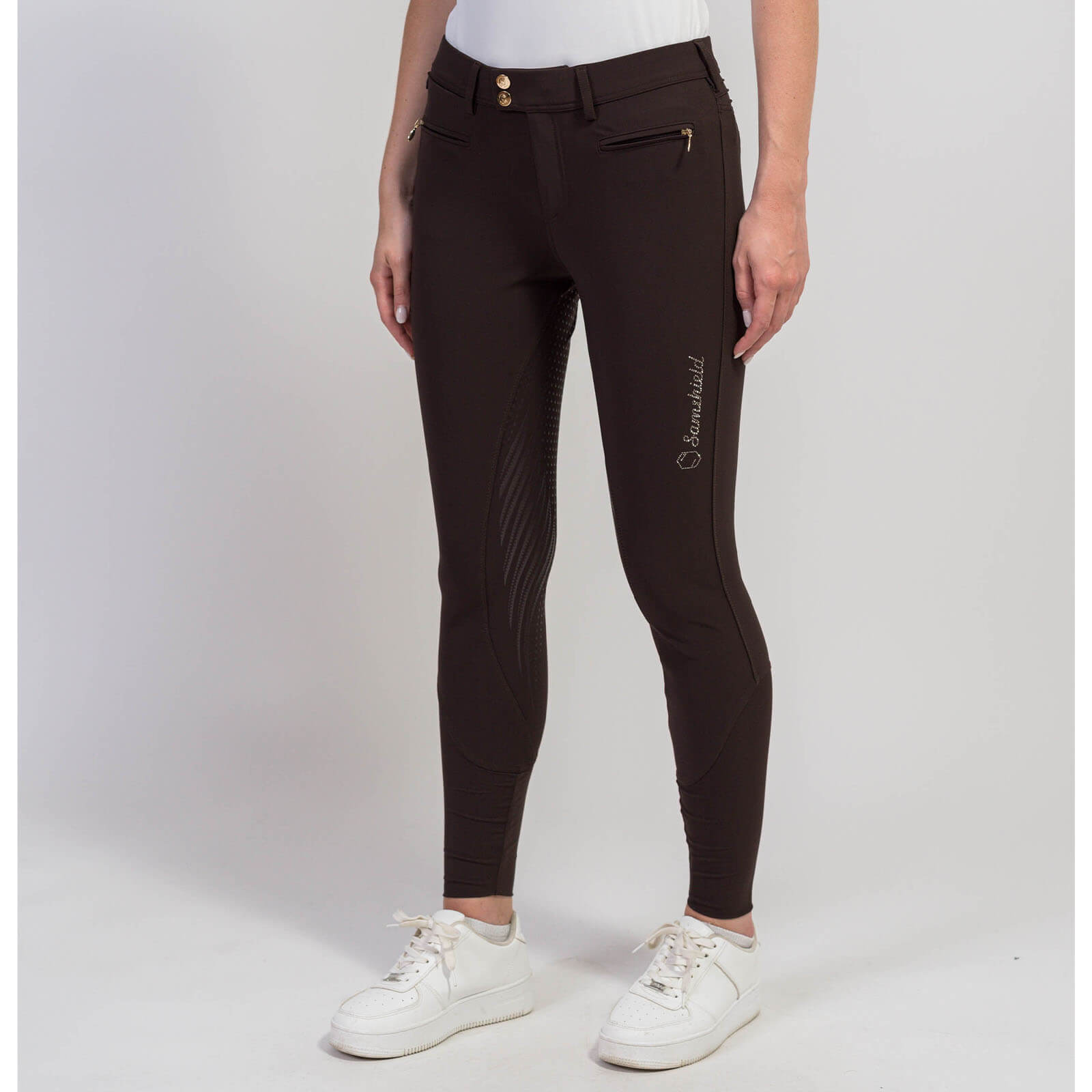 Diese Reithose besticht durch ihre atemberaubenden Stickereien und Swarovski®-Details, die deiner Reitausrüstung einen Hauch von Luxus verleihen. Die Farbkombination Chocolate - Champagne oder Night Blue - Champagne setzt stilvolle Akzente, während der sechslagige Full-Grip-Besatz optimalen Halt bietet. Genieße eine Reithose, die nicht nur optisch überzeugt, sondern auch durchdachte Funktionalität bietet.