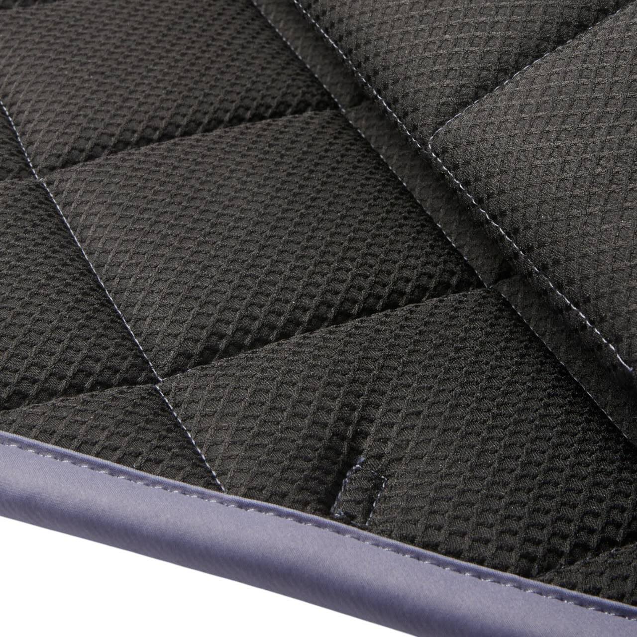 Das Innenfutter mit spezieller Waffelstruktur unterstützt ein effektives Feuchtigkeitsmanagement. Schweiß wird schnell aufgenommen und nach außen transportiert. Dadurch bleibt der Pferderücken auch bei anspruchsvollen Einheiten angenehm trocken. Die atmungsaktiven Eigenschaften fördern zusätzlich die Luftzirkulation unter dem Sattel. Gleichzeitig ist die Schabracke vollständig tierfrei hergestellt. Damit verbindet sie Funktionalität, Komfort und eine moderne, verantwortungsbewusste Materialwahl.