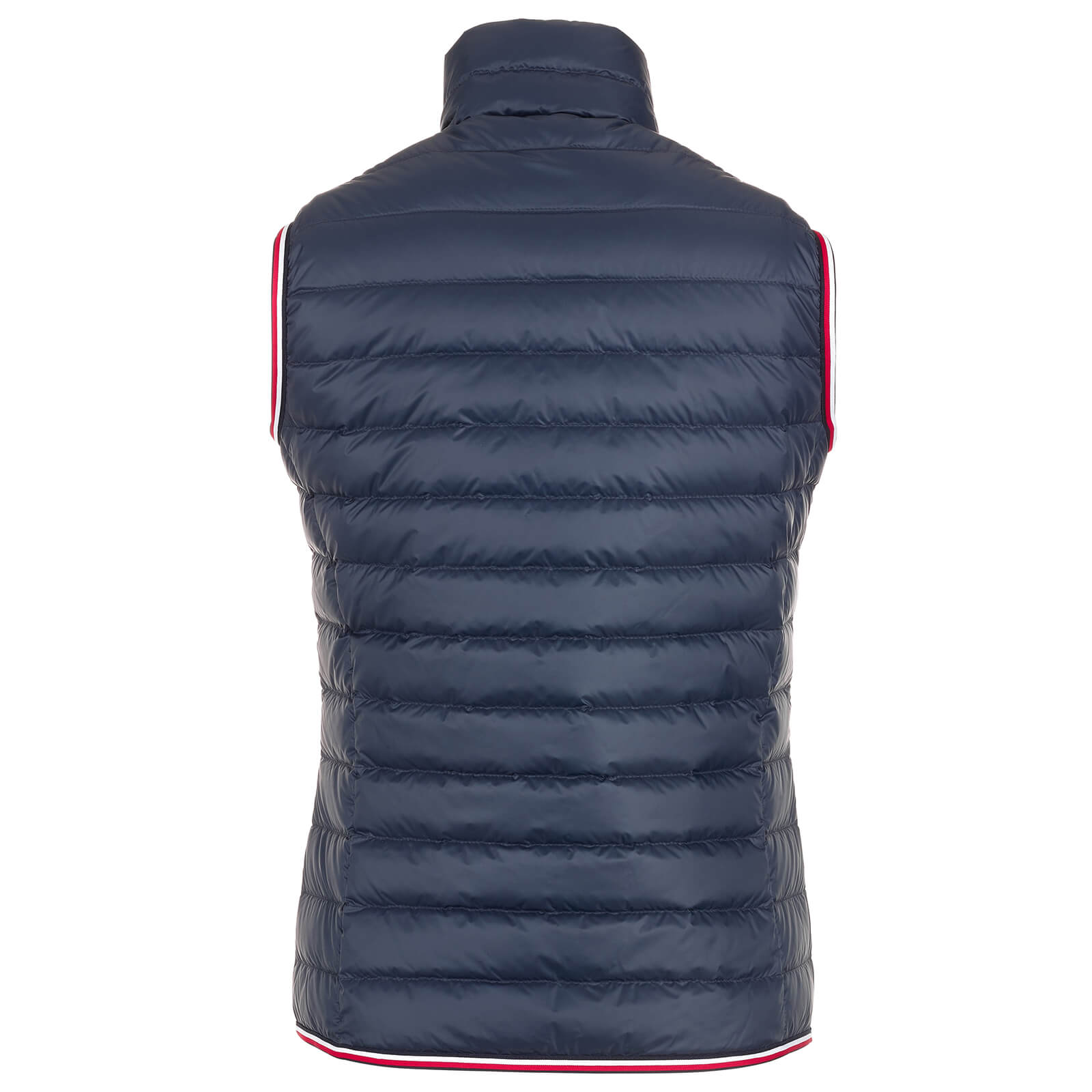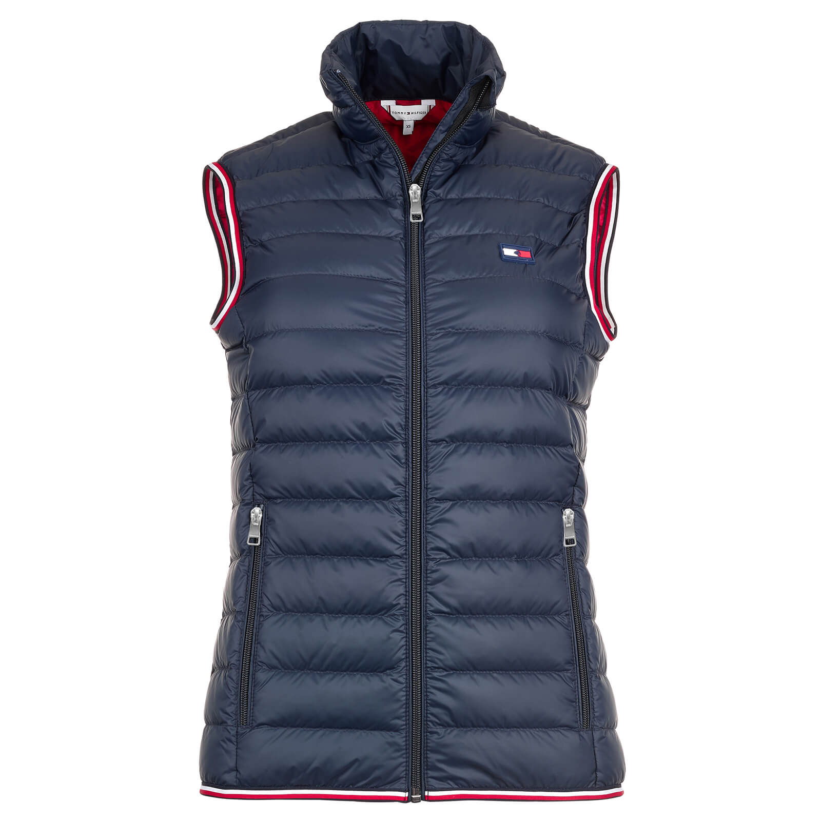 Weste Damen Light Re-Down Daunenweste von Tommy Hilfiger Equestrian kombiniert stilvolles Design mit hoher Funktionalität. Diese leichte Daunenweste ist perfekt für alle, die auch an kühleren Tagen nicht auf Komfort verzichten möchten. Genieße die wärmende Wirkung recycelter Materialien und setze ein modisches Statement.