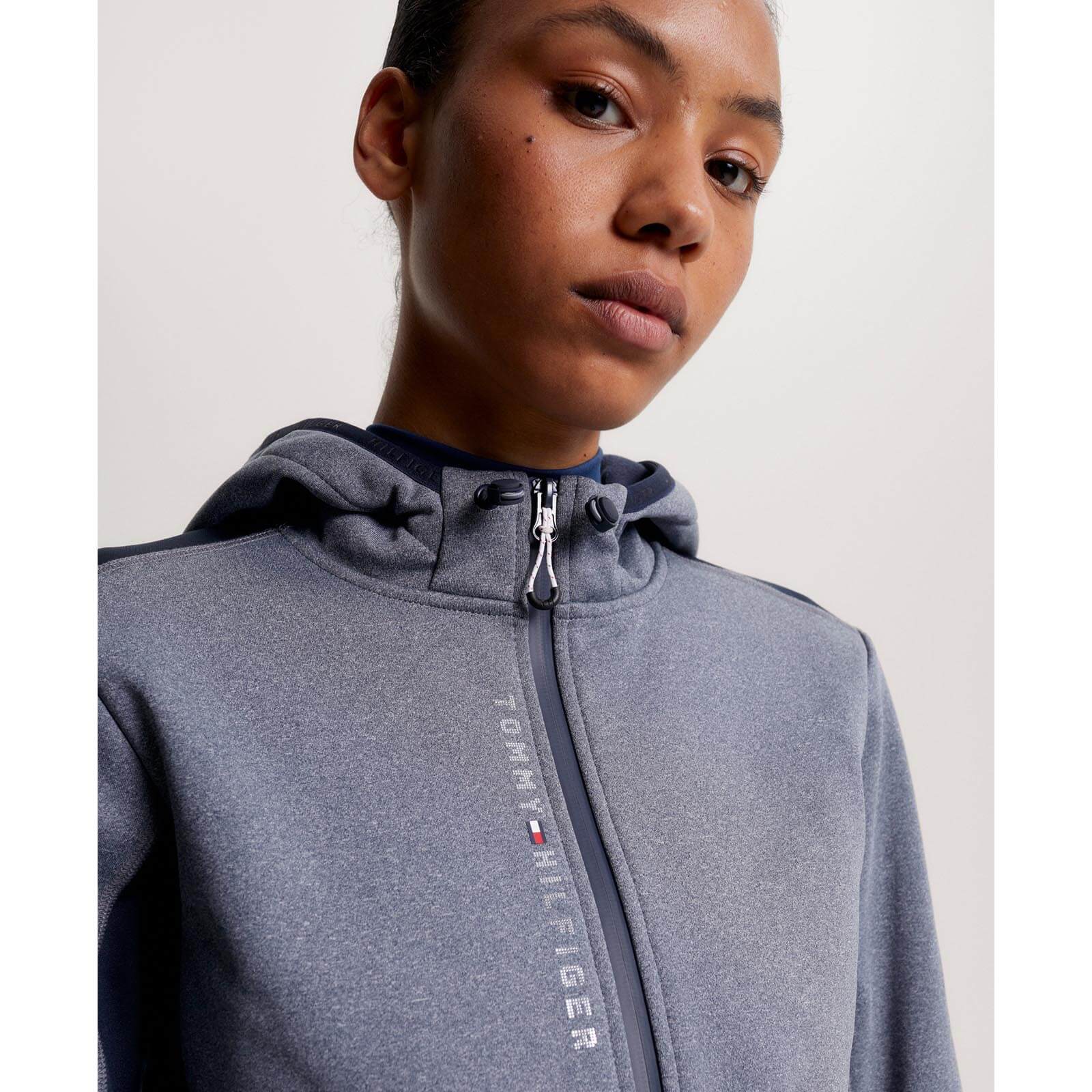 Mit ihrer modernen Farbgebung in Grey Melange und Desert Sky setzt die Jacke Damen London HW 2023 Softshelljacke stilvolle Akzente. Der klassische Tommy Hilfiger Look mit dem globalen Streifendetail auf der Kapuze verleiht ihr eine zeitlose Eleganz. Die Metalldruckknöpfe unter der Kapuze bieten nicht nur optische Highlights, sondern auch praktischen Nutzen beim Reiten.