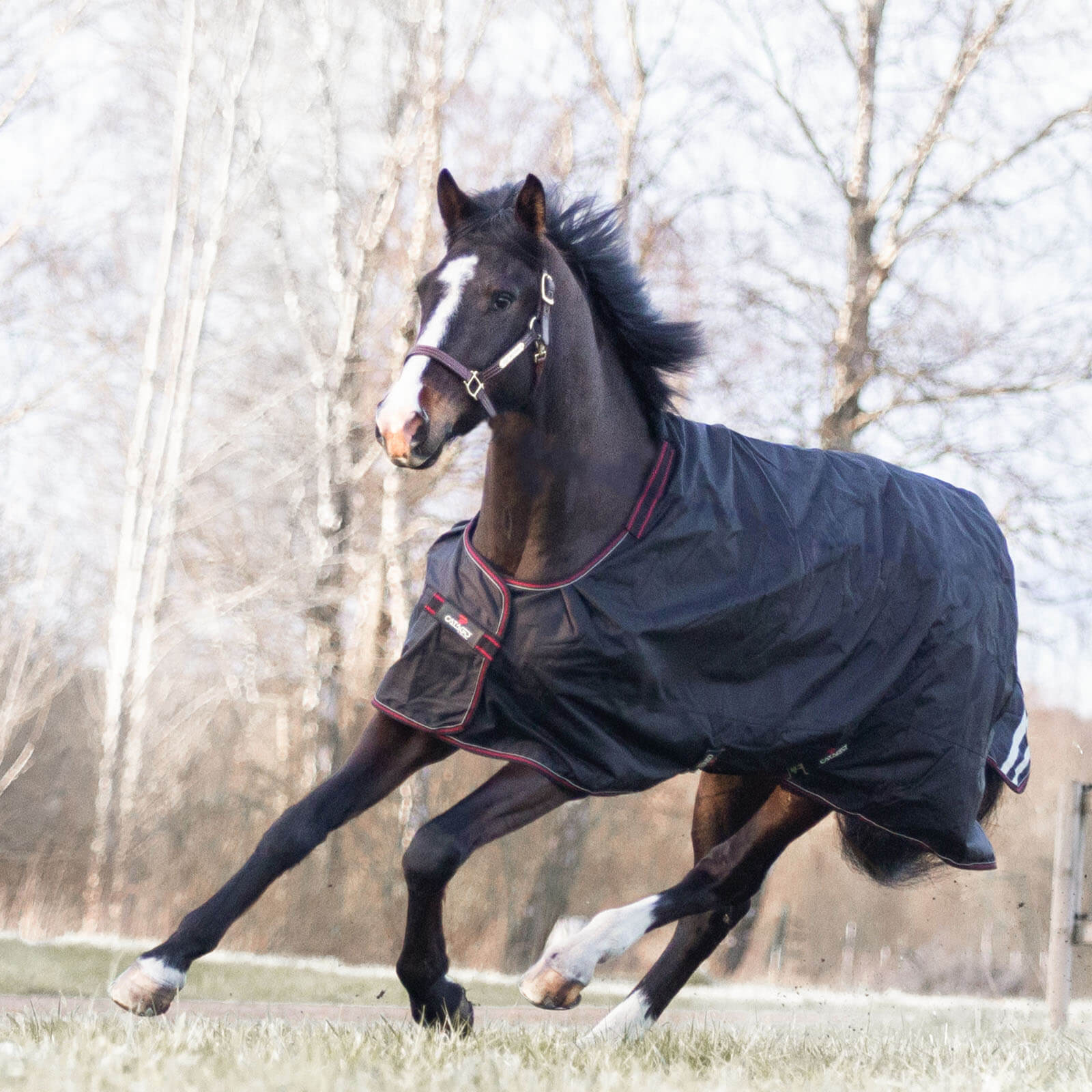 Die Dual Pro Weidedecke besticht durch ihre elegante schwarze Farbe, die durch rote Details und eine reflektierende Kordel sportlich akzentuiert wird. Diese stilvollen Elemente sorgen nicht nur für einen ansprechenden Look, sondern erhöhen auch die Sichtbarkeit und Sicherheit deines Pferdes bei schlechten Lichtverhältnissen.