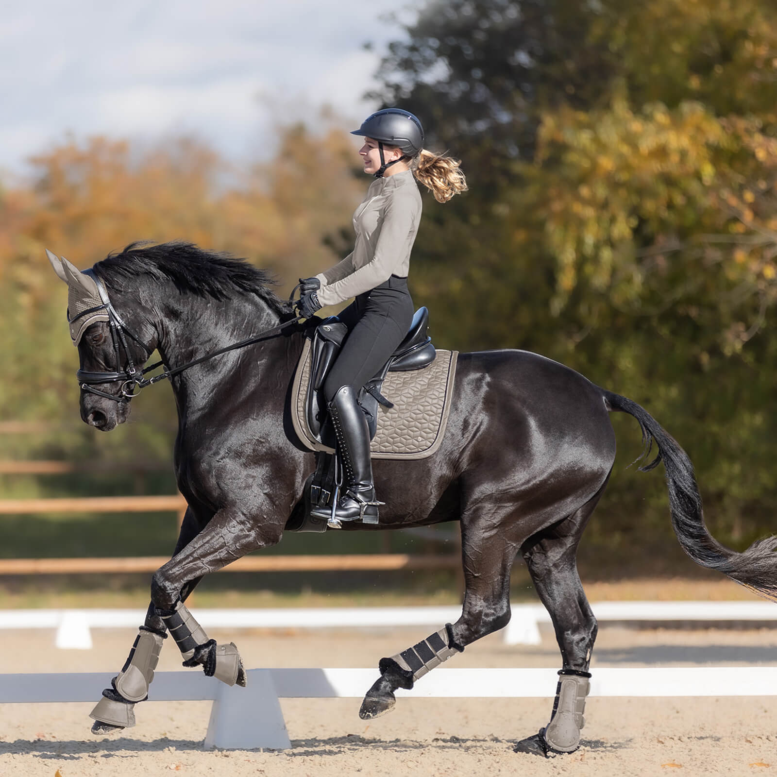 Die Gamaschen Pegasus überzeugen durch ihr elegantes Design in Beige, ergänzt durch dezente schwarze Details. Das silberfarbene Metall-Logo verleiht ihnen einen Hauch von Luxus. Die Kombination aus Ästhetik und Funktionalität macht diese Gamaschen zu einem unverzichtbaren Accessoire in deiner Reitausrüstung, das perfekt zur restlichen Pegasus Kollektion passt.