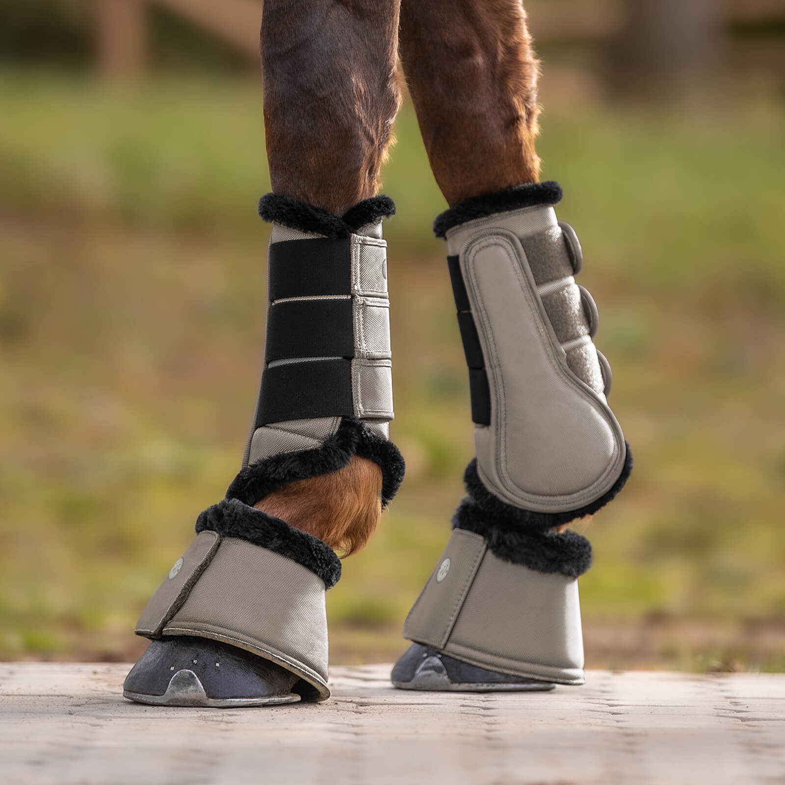 Ausgestattet mit einem starken Klettverschluss, bieten die Gamaschen Pegasus sicheren Halt und verhindern ein Verrutschen, selbst bei intensiven Bewegungen. Das weiche, stoßdämpfende Kunstfell sorgt für zusätzlichen Schutz und Komfort, indem es die Beine deines Pferdes vor Stößen und Druckstellen bewahrt.