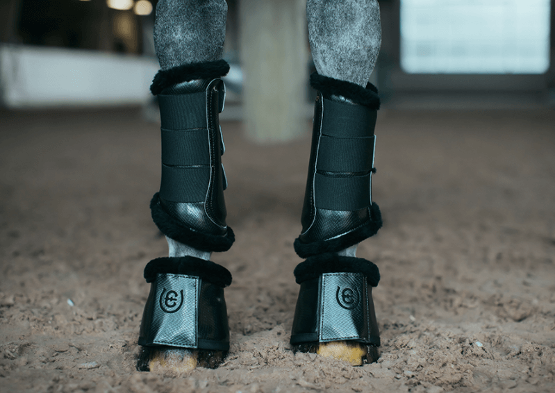 Die Gamaschen Deep Olivine bestechen durch ihr glänzendes Kunstleder im Schlangenleder-Imitat, das deinem Pferd einen luxuriösen Look verleiht. Die dunkle, olivgrüne Farbe harmoniert perfekt mit anderen Artikeln der Kollektion und sorgt für ein stimmiges Gesamtbild. Dank der robusten Außenseite und der weichen Innenseite bieten diese Gamaschen nicht nur Schutz, sondern auch einen hohen Tragekomfort.