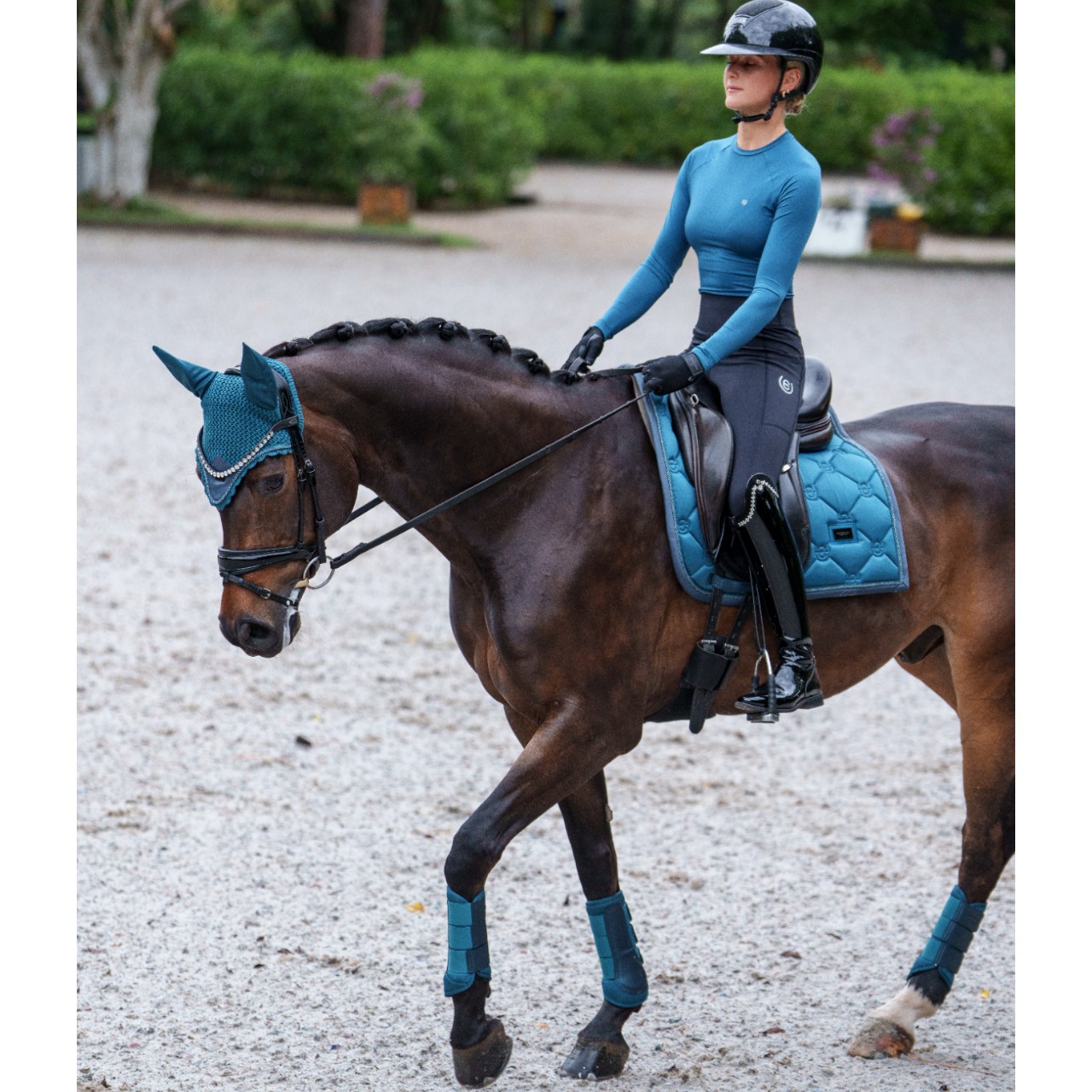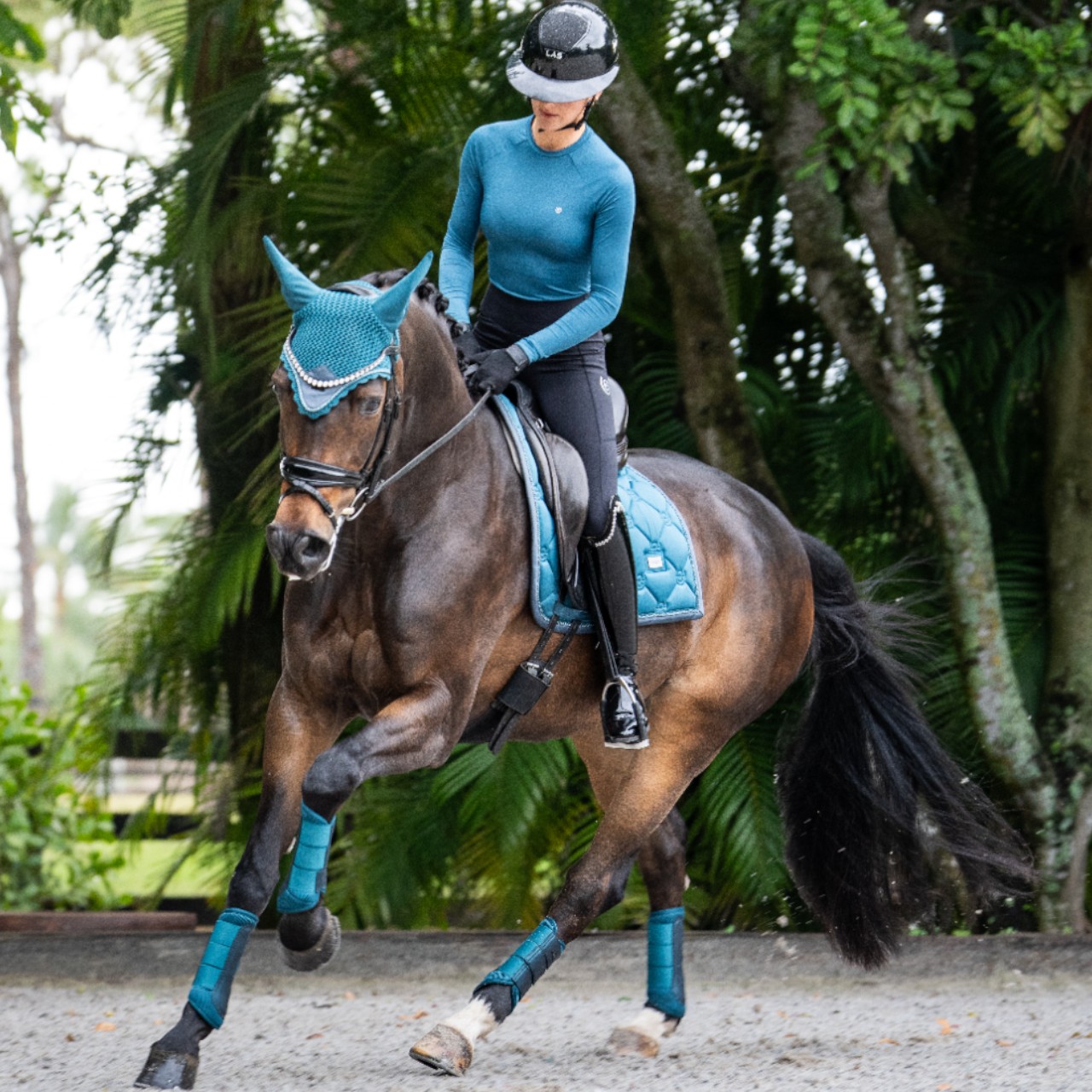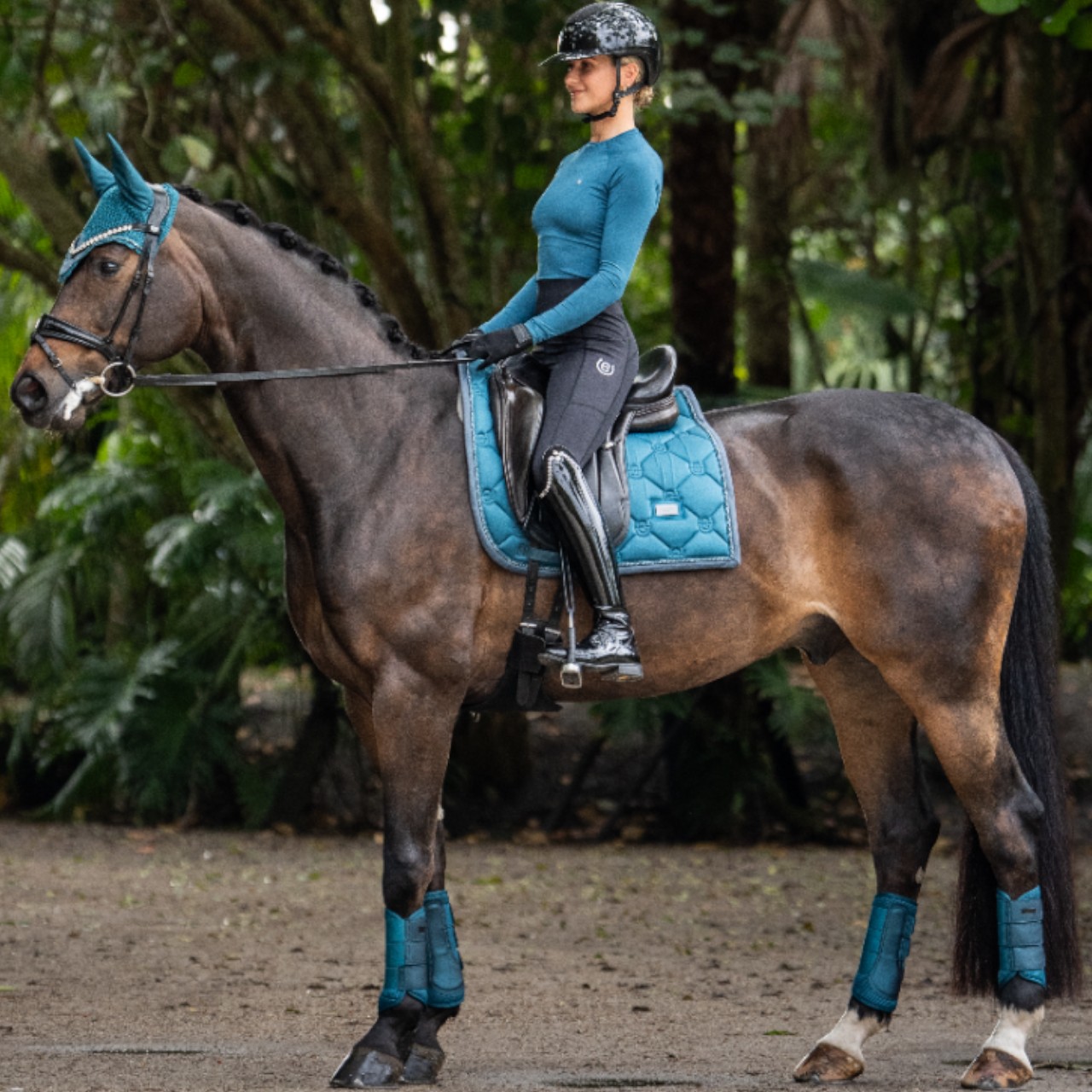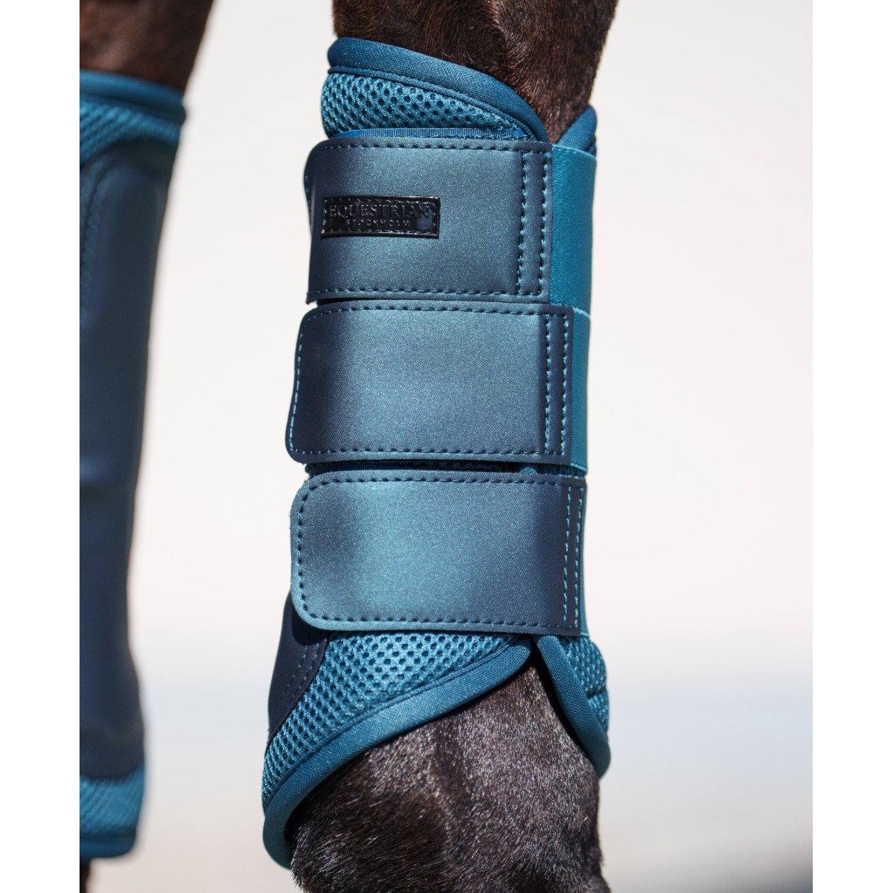 Equestrian Stockholm präsentiert mit den Dressurgamaschen Teal Blue Gamaschen eine stilvolle und funktionale Lösung für den Schutz deines Pferdes. Diese atmungsaktiven Mesh Gamaschen überzeugen durch hohen Tragekomfort und ein elegantes Design für Training und Turnier.