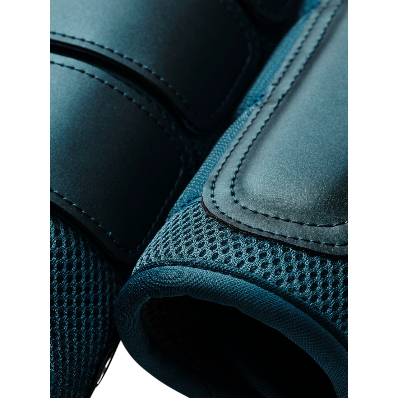 Die Dressurgamaschen Teal Blue Gamaschen bestehen aus innovativem Mesh-Material, das besonders leicht und atmungsaktiv ist. So bleibt das Pferdebein auch bei intensiven Trainingseinheiten gut belüftet. Der anatomische Schnitt sorgt für eine optimale Passform und unterstützt die natürliche Bewegungsfreiheit deines Pferdes. Gleichzeitig gewährleistet die durchdachte Konstruktion einen zuverlässigen Halt ohne zu verrutschen. Dank der weichen Innenpolsterung wird der Druck gleichmäßig verteilt und Scheuerstellen werden vermieden. So eignen sich die Gamaschen ideal für den täglichen Einsatz im Dressurtraining.