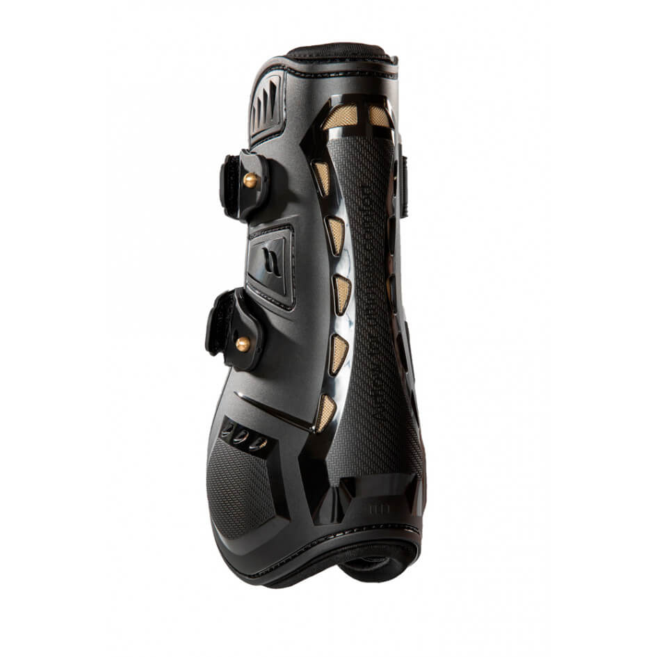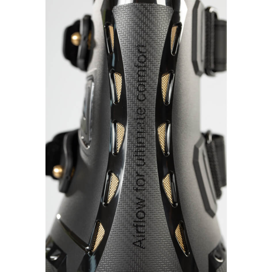 Die Gamaschen Airflow Tendon Boots Beinschutz bestechen durch ihr schlankes, modernes Design in den klassischen Farben Black und Brown. Die figurbetonte Passform sorgt nicht nur für einen ästhetischen Look, sondern bietet gleichzeitig maximalen Komfort und optimale Bewegungsfreiheit für dein Pferd. Die robuste Außenschale verteilt den Druck gleichmäßig, während sie äußere Stöße effektiv absorbiert.