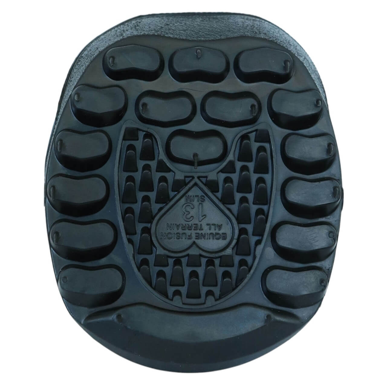 Die All Terrain Sohle des Hufschuh Trekking Shoe Slim bietet exzellenten Grip und Stabilität selbst bei rutschigen Bedingungen. Die stoßdämpfende Sohle unterstützt die natürliche Bewegung des Hufs und fördert eine gesunde Blutzirkulation. Optional anbringbare Spikes sorgen für zusätzlichen Halt auf besonders anspruchsvollem Gelände.