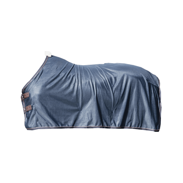 Die Mesh Fliegendecke besticht durch ihr stilvolles Design in den Farben Navy und Schwarz. Der anatomische Schnitt sorgt für eine perfekte Passform, während das vegane Lammfell am Widerrist zusätzlichen Komfort bietet. Diese Decke ist nicht nur ein optisches Highlight, sondern bietet auch praktische Vorteile im Stall und auf der Koppel.