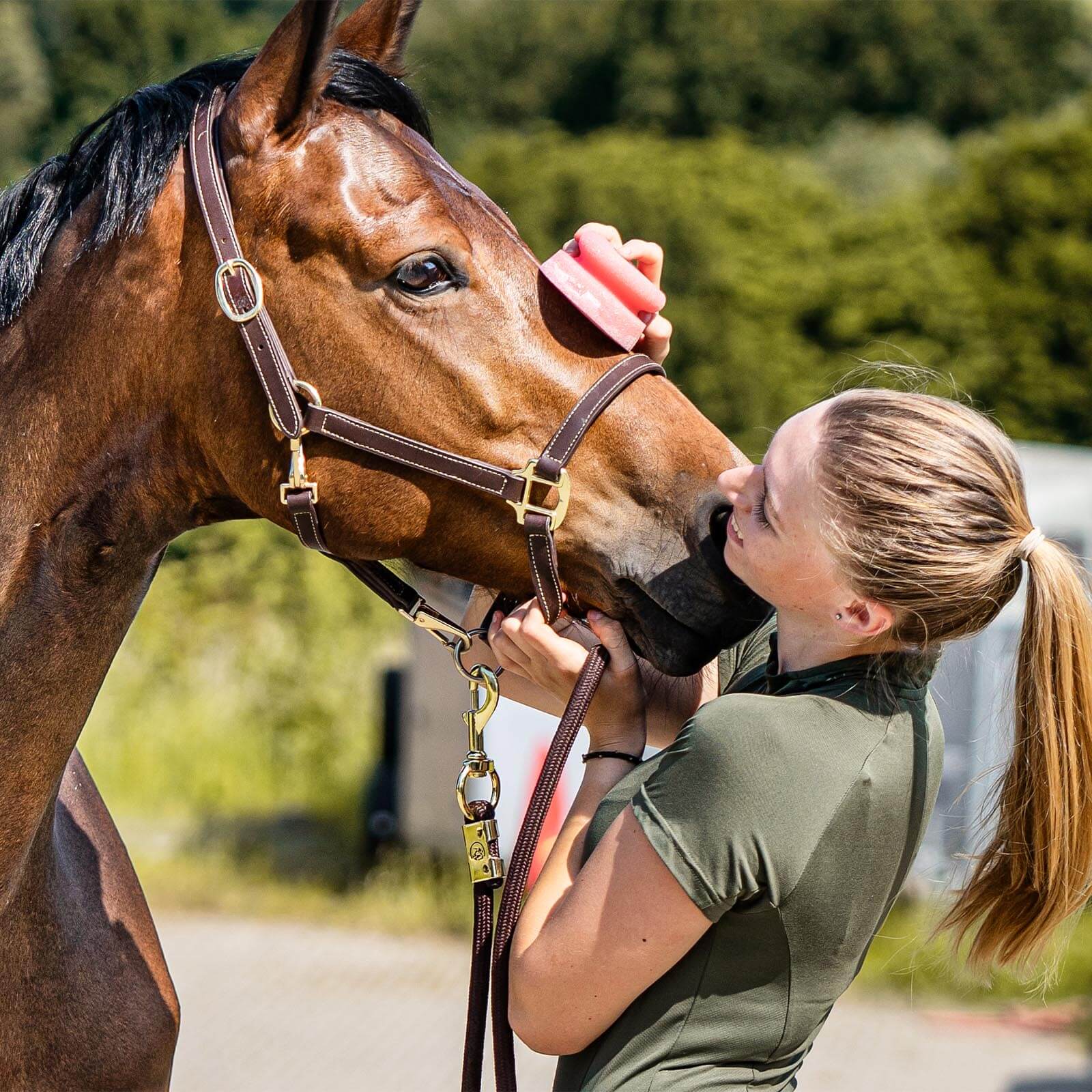Trage das Gel gleichmäßig auf die gewünschten Bereiche deines Pferdes auf. Achte darauf, eine ausreichende Menge zu verwenden, um die gewünschten Bereiche abzudecken. Das Produkt ist für den Einsatz in verschiedenen Reitsportumgebungen geeignet.