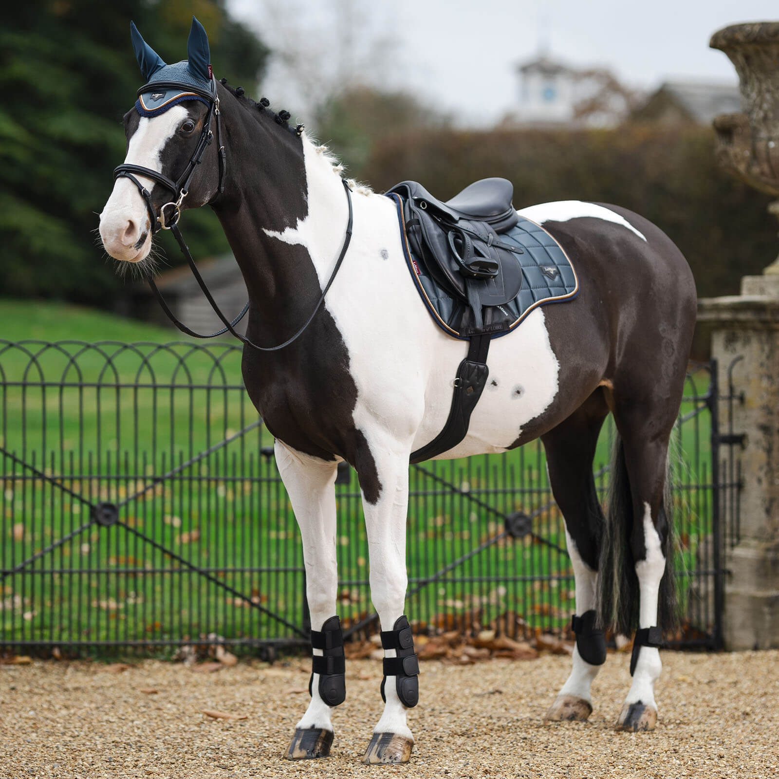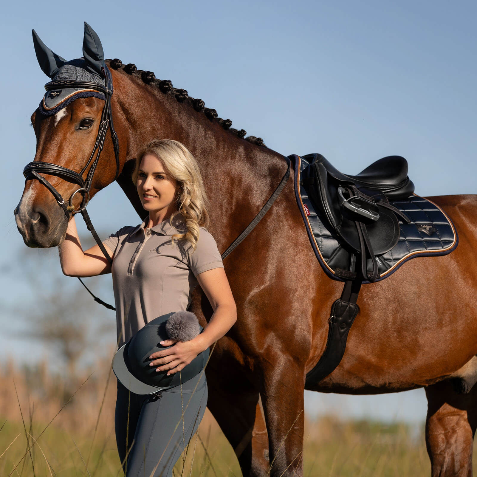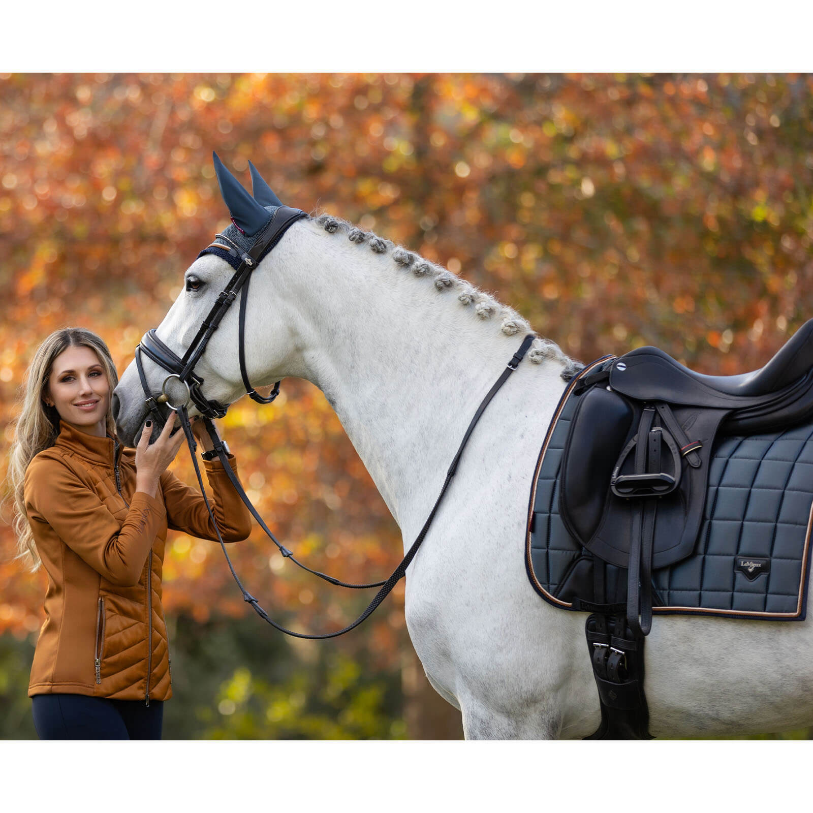 Die Fliegenmütze Loire Fliegenhaube beeindruckt mit einem luxuriösen Satin-Stoff und dem charakteristischen LeMieux Loire Metallmotiv, das deinem Pferd einen edlen Look verleiht. Der handgestrickte Drei-Wege-Häkelstoff sorgt für eine einzigartige Optik und bietet gleichzeitig praktische Vorteile durch seine Atmungsaktivität – ideal für warme Sommertage.