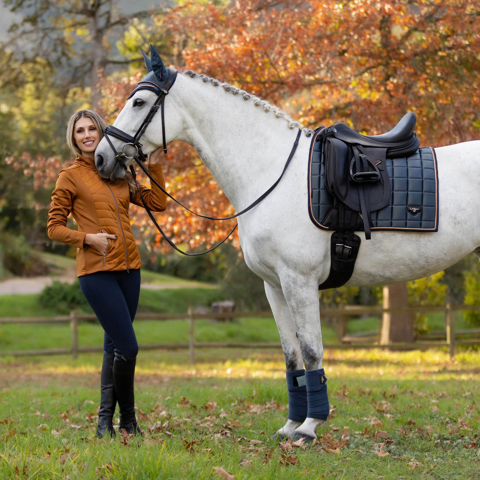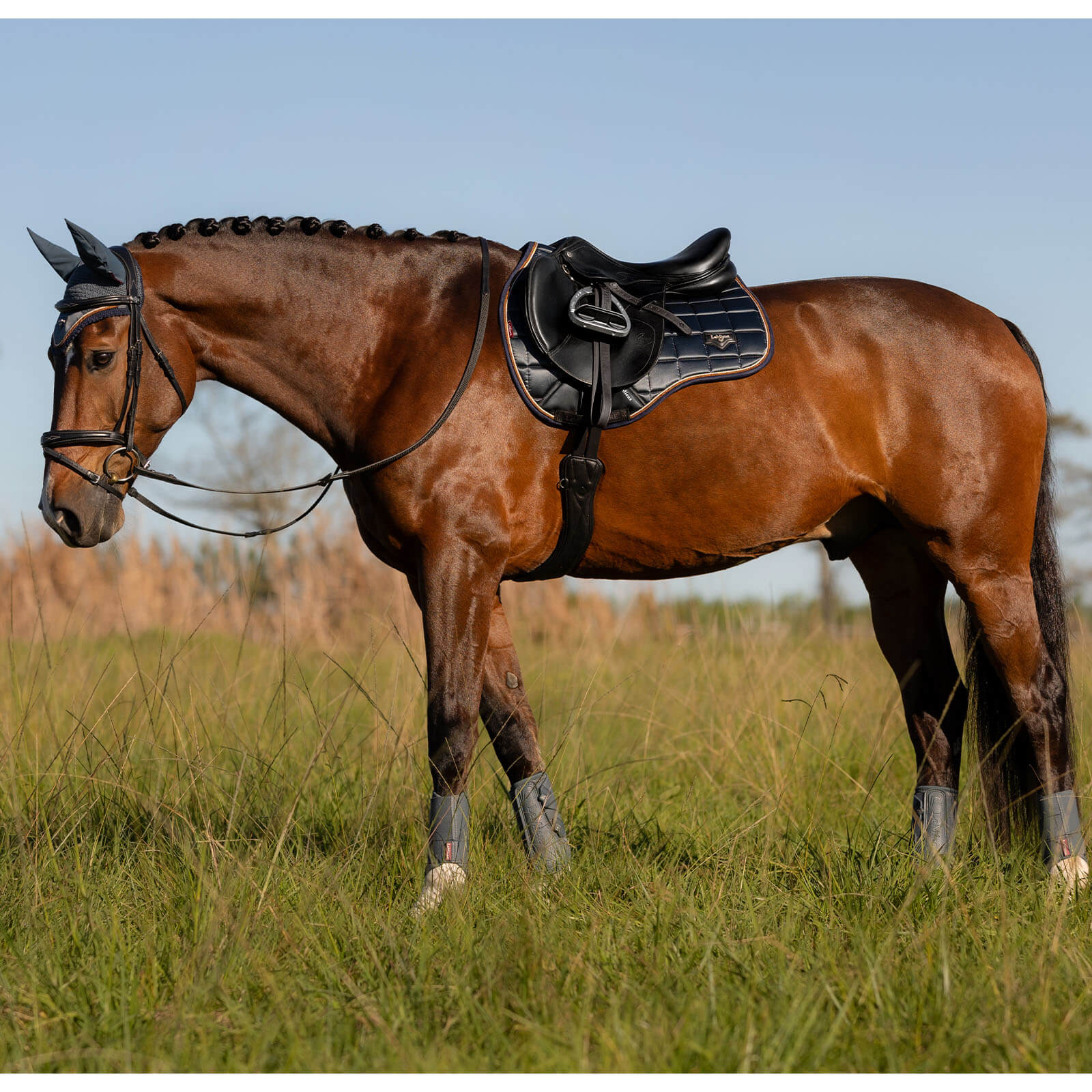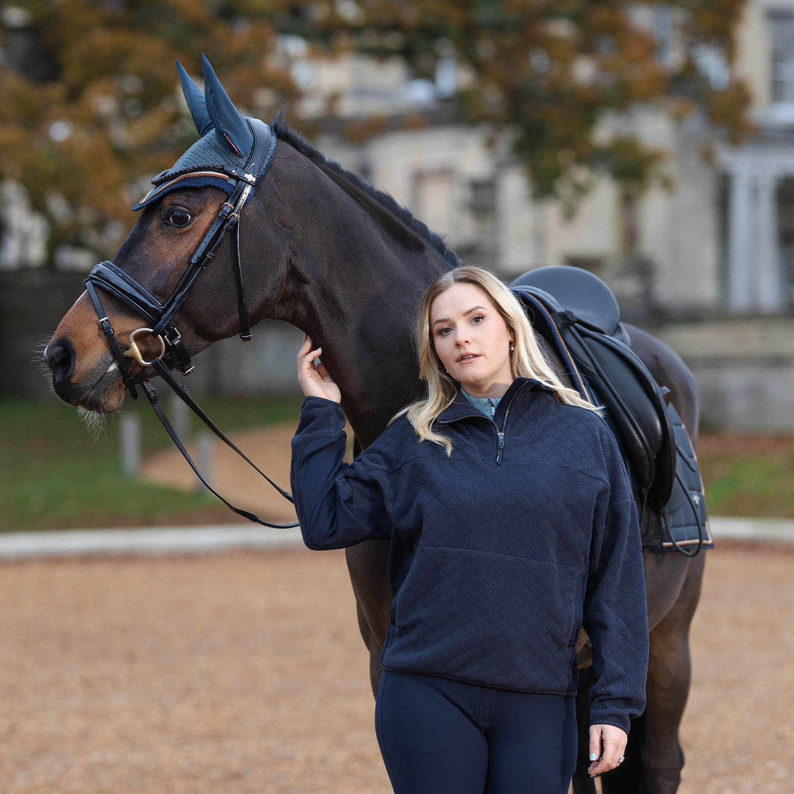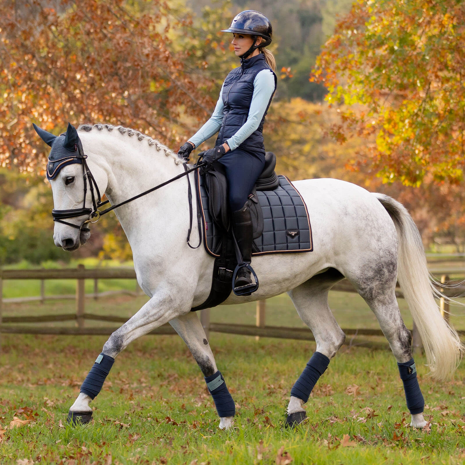 Die Fliegenmütze Loire Fliegenhaube beeindruckt mit einem luxuriösen Satin-Stoff und dem charakteristischen LeMieux Loire Metallmotiv, das deinem Pferd einen edlen Look verleiht. Der handgestrickte Drei-Wege-Häkelstoff sorgt für eine einzigartige Optik und bietet gleichzeitig praktische Vorteile durch seine Atmungsaktivität – ideal für warme Sommertage.