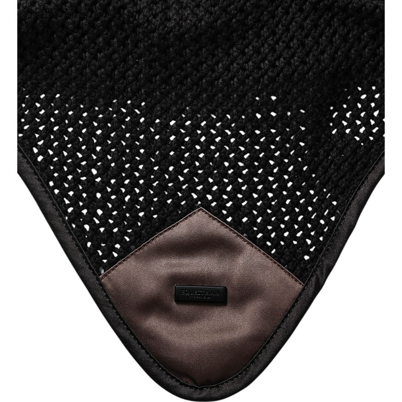 Die Fliegenhaube Sportive Modern Mocha besticht durch ihr elegantes Häkel-Design in edlem Schwarz und einem kontrastierenden mokka-braunen Satin-Patch. Die schwarze Kantenbordüre und das markante Metallbadge runden das luxuriöse Erscheinungsbild ab. Dieses durchdachte Design bietet nicht nur ästhetische Vorzüge, sondern sorgt auch für eine effektive Geräuschminderung beim Reiten.