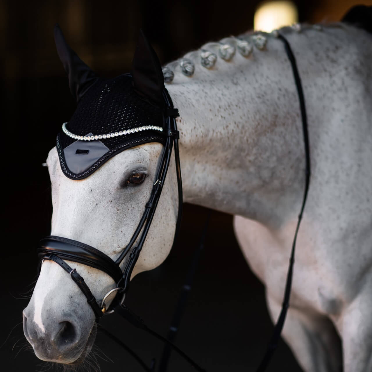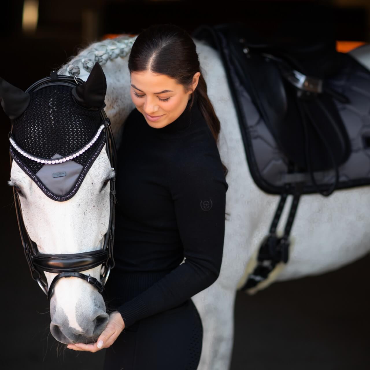 Die Fliegenmütze Winter Shadow Fliegenhaube von Equestrian Stockholm vereint stilvolle Eleganz mit herausragender Funktionalität. Diese luxuriöse Fliegenhaube schützt nicht nur vor lästigen Insekten, sondern sorgt durch Geräuschreduzierung für eine entspanntere Reitzeit. Erlebe, wie dein Pferd in jeder Situation ruhig und konzentriert bleibt.