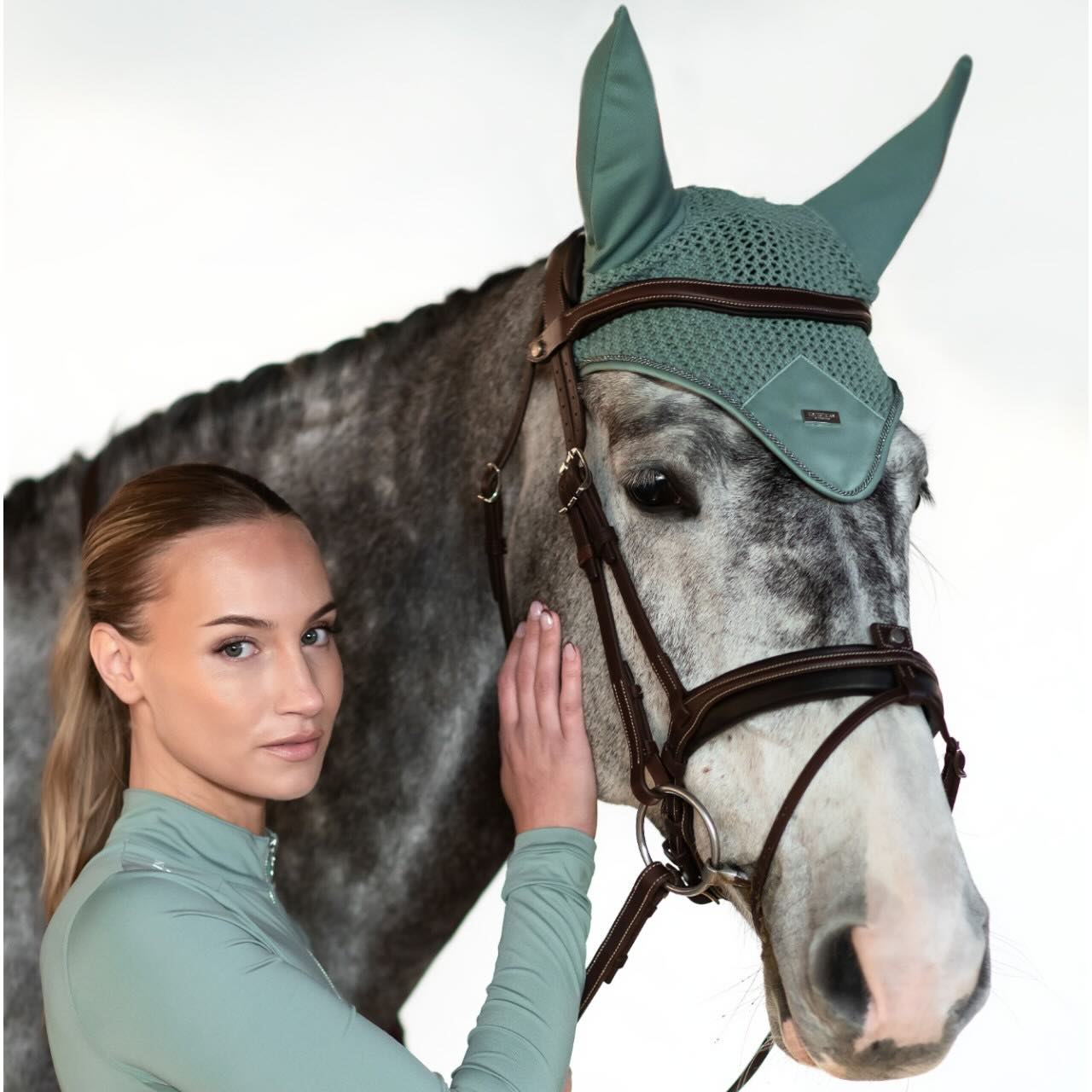 Equestrian Stockholm präsentiert mit der Fliegenhaube Mint Green Fliegenmütze ein stilvolles und funktionales Accessoire für dein Pferd. Entdecke die perfekte Kombination aus Design, Komfort und Schutz – ideal für Training und Turnier!