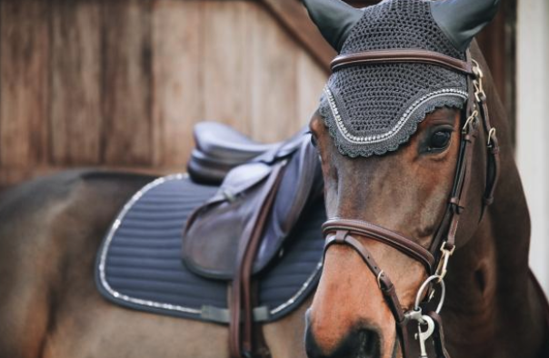 Fliegenmütze Wellington Stone & Pearl Soundless von Kentucky Horsewear vereint stilvolles Design und hervorragende Funktionalität. Diese handgemachte Fliegenmütze schützt dein Pferd nicht nur vor lästigen Insekten, sondern auch vor störenden Geräuschen dank der schalldichten Ohren. Der glamouröse Glitzerstein & Perlen-Look sorgt zudem für einen eleganten Auftritt auf jedem Turnier.