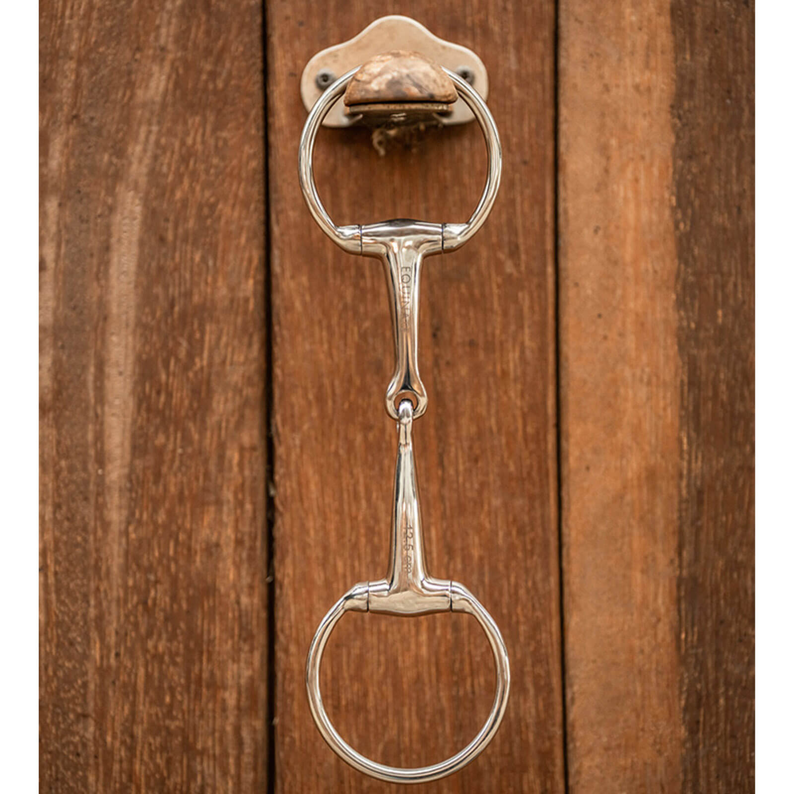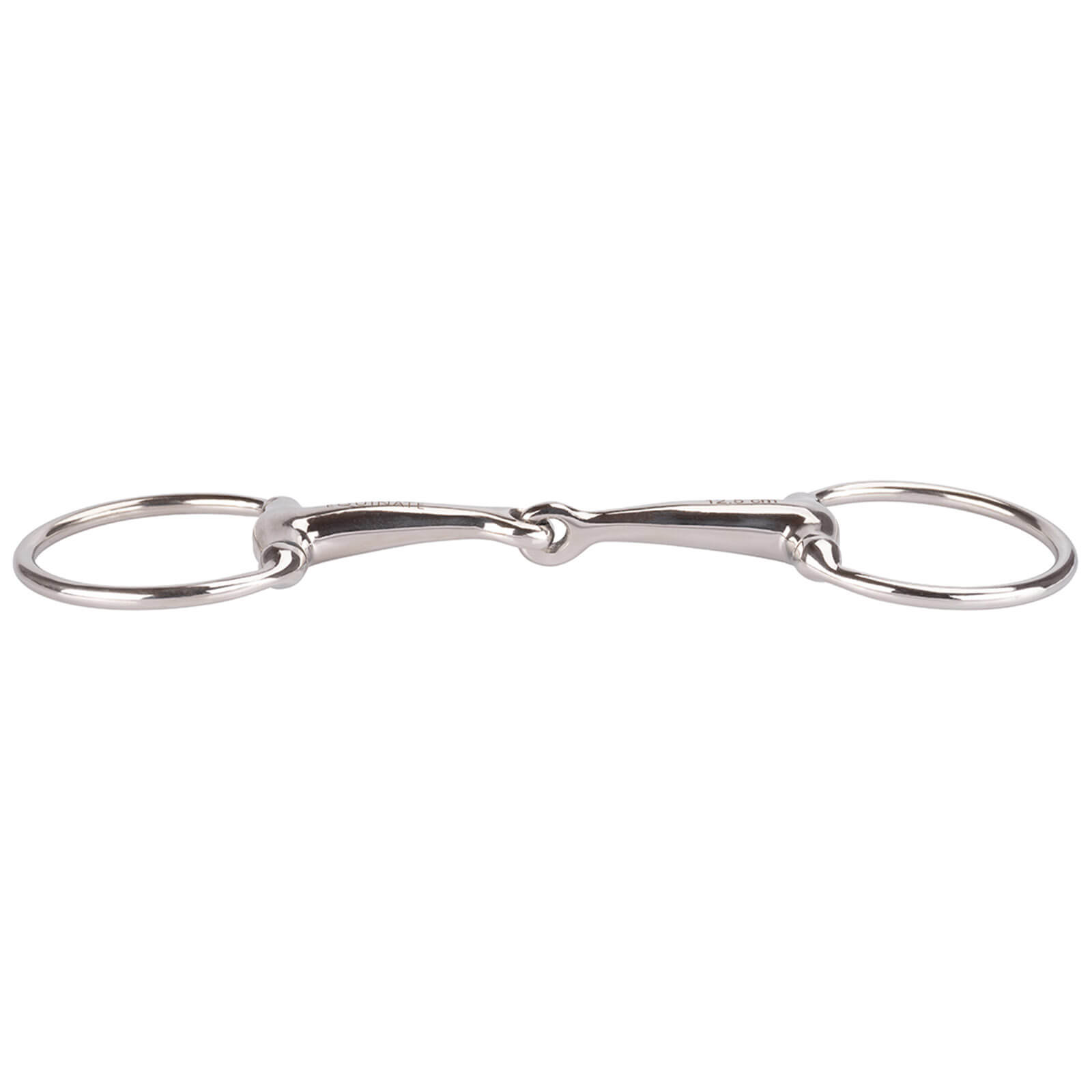 Mit der einzigartigen Konstruktion des einfach gebrochenen Mundstücks ermöglicht das Edelstahlgebiss eine feine und präzise Übertragung der Zügelhilfen. Die besondere Ringkonstruktion bietet zusätzliche seitliche Unterstützung, die besonders bei Wendungen und Pferden mit Anlehnungsschwierigkeiten von Vorteil ist. Diese technische Perfektion fördert eine klare, sensible Kommunikation.