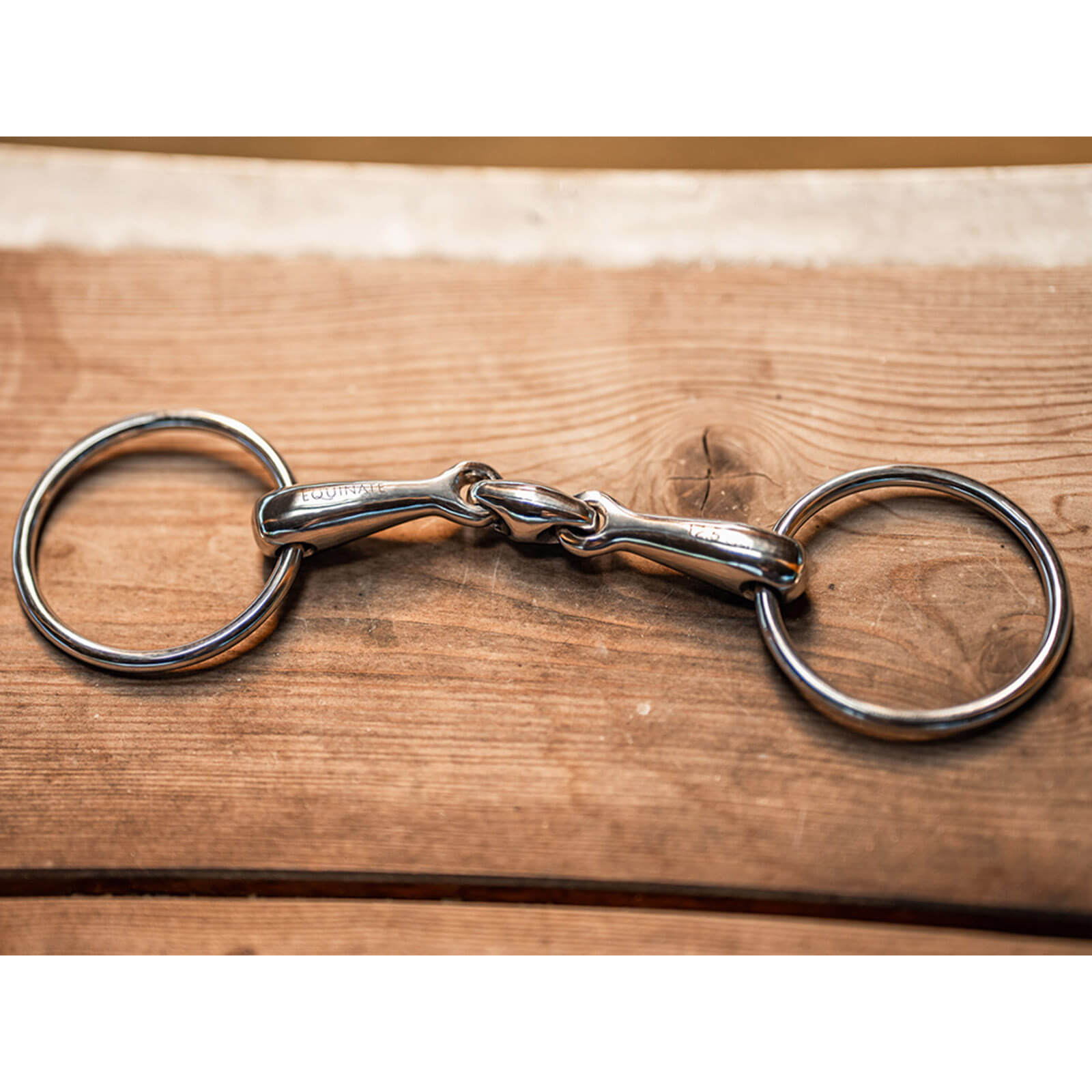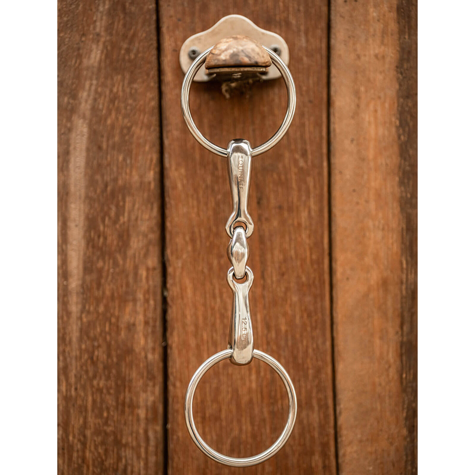 Das edle Edelstahlgebiss der Equinate Wassertrense besticht durch seine glatte Oberfläche und die glänzenden, beweglichen Ringe. Diese sorgen nicht nur für eine ansprechende Optik, sondern auch für eine flexible Gebisshaltung, die den Tragekomfort für dein Pferd erheblich steigert.