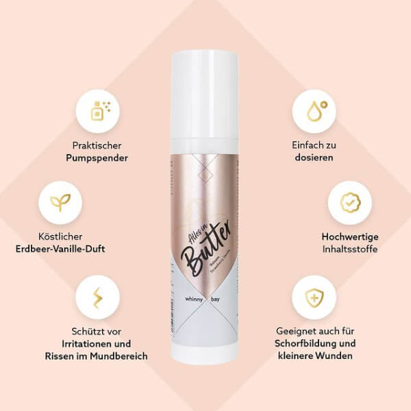 Der Balsam Alles in Butter Strawberry Vanilla von whinny X bay wird in einer praktischen 200 ml Größe angeboten. Die Rezeptur enthält sorgfältig ausgewählte Inhaltsstoffe, die eine cremige Konsistenz garantieren. Die einzigartige Mischung aus Strawberry und Vanilla sorgt für ein angenehmes Aroma, das den Pflegeprozess begleitet.