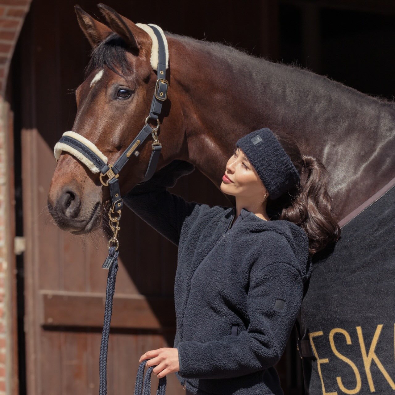 Die charakteristische Eskadron-Metallplakette auf der linken Seite steht für Qualität und Tradition. Der Heritage-Schriftzug und die glänzenden Elemente machen das Halfter zu einem echten Blickfang – sei es beim Training, Transport oder Fotoshooting. Seine hochwertige Verarbeitung sorgt für lange Haltbarkeit und zuverlässige Nutzung über viele Saisons hinweg. Als Teil der exklusiven Heritage-Kollektion verbindet es zeitlose Eleganz mit praktischen Eigenschaften. So wird das Fellhalfter zu einem stilvollen Must-have für qualitätsbewusste Reiterinnen und Reiter. Ein Statement für Komfort, Funktion und Design auf höchstem Niveau.